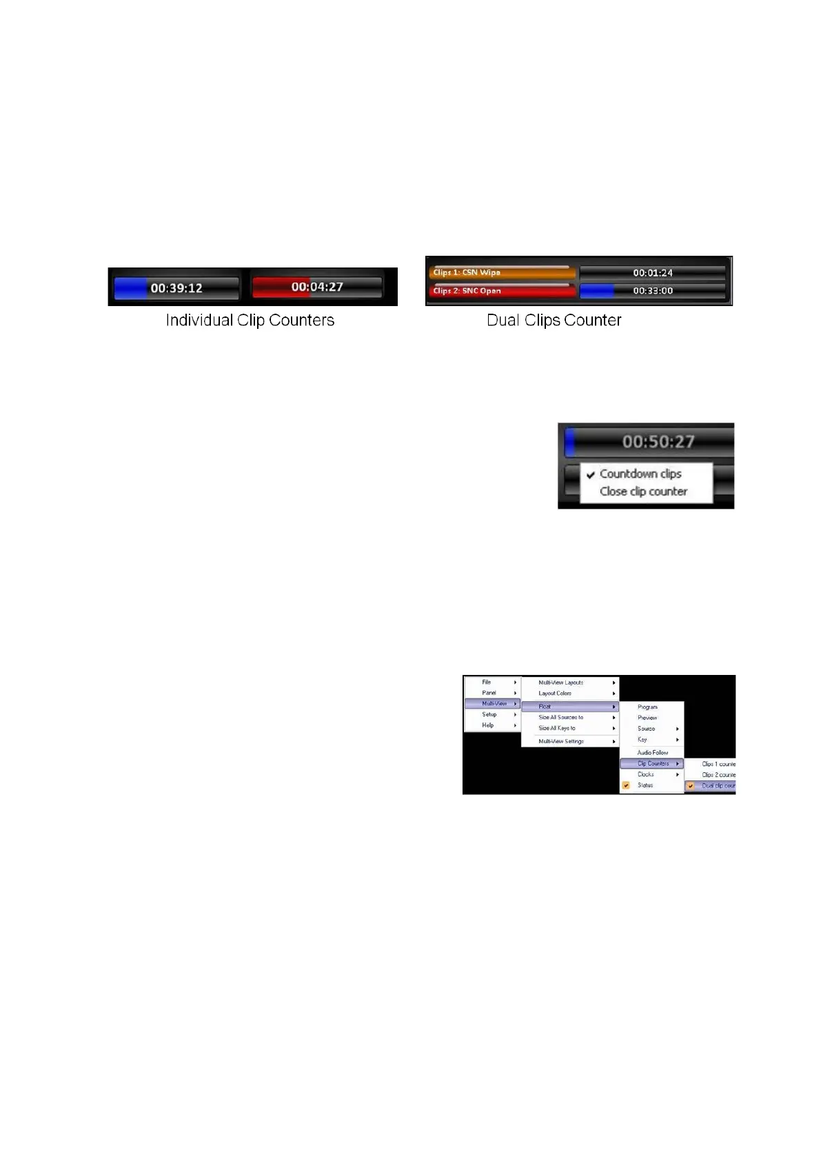 menu select Clips 1 counter, Clips 2
