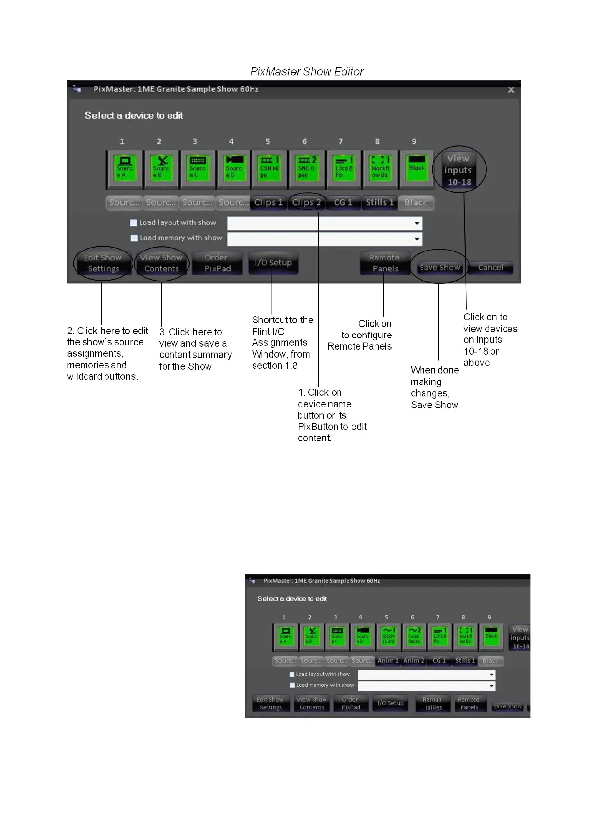 Select the device whose content you wish to edit by clicking on its PixButton or