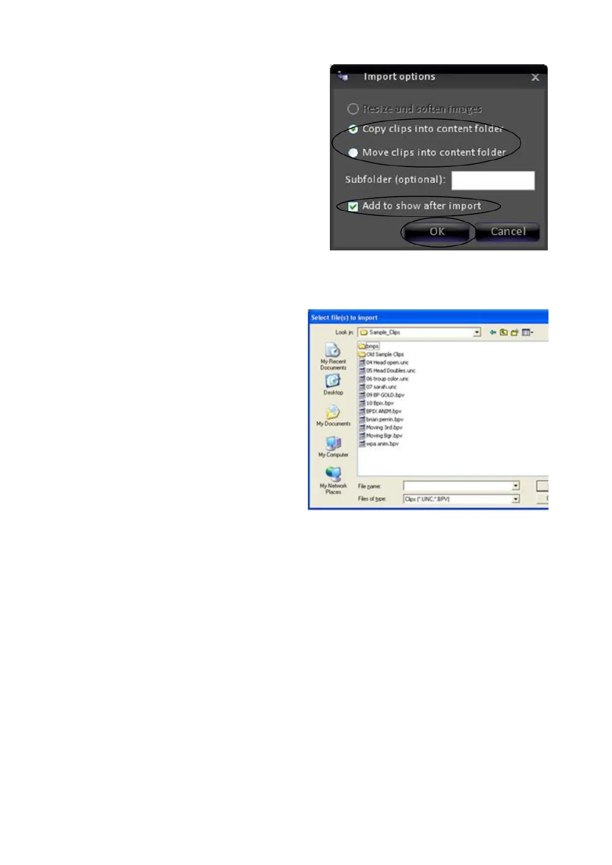 of the clip you wish to import. Select