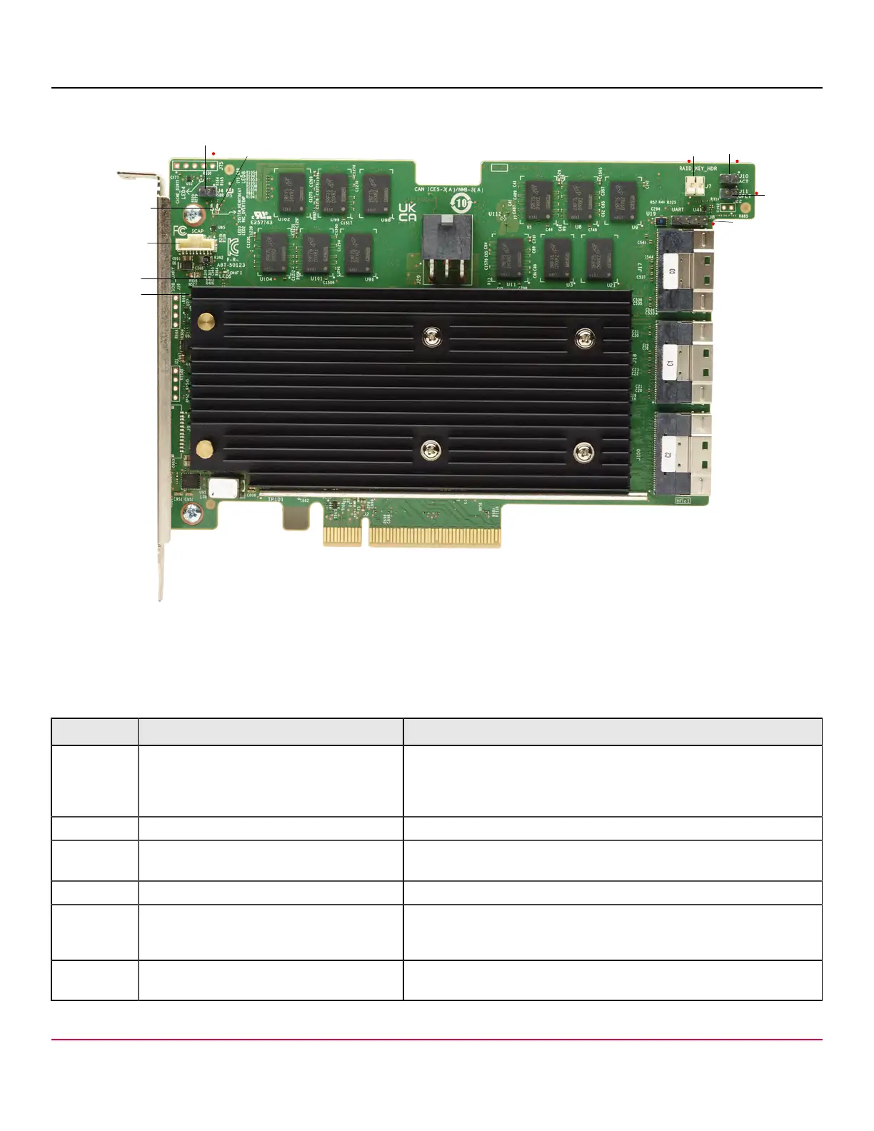 Figure 6: Card Layout for the MegaRAID 9670-24i Tri-Mode Storage Adapter