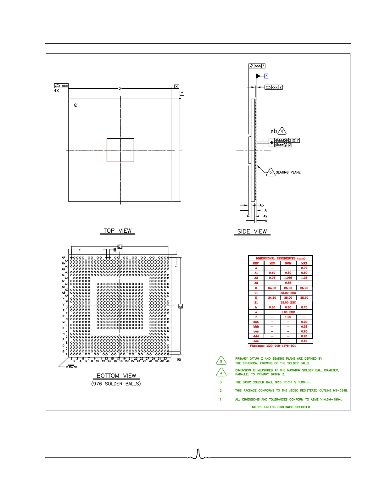 Figure 1-55: 976-FCBGA+HS Package (Without Heat Sink)