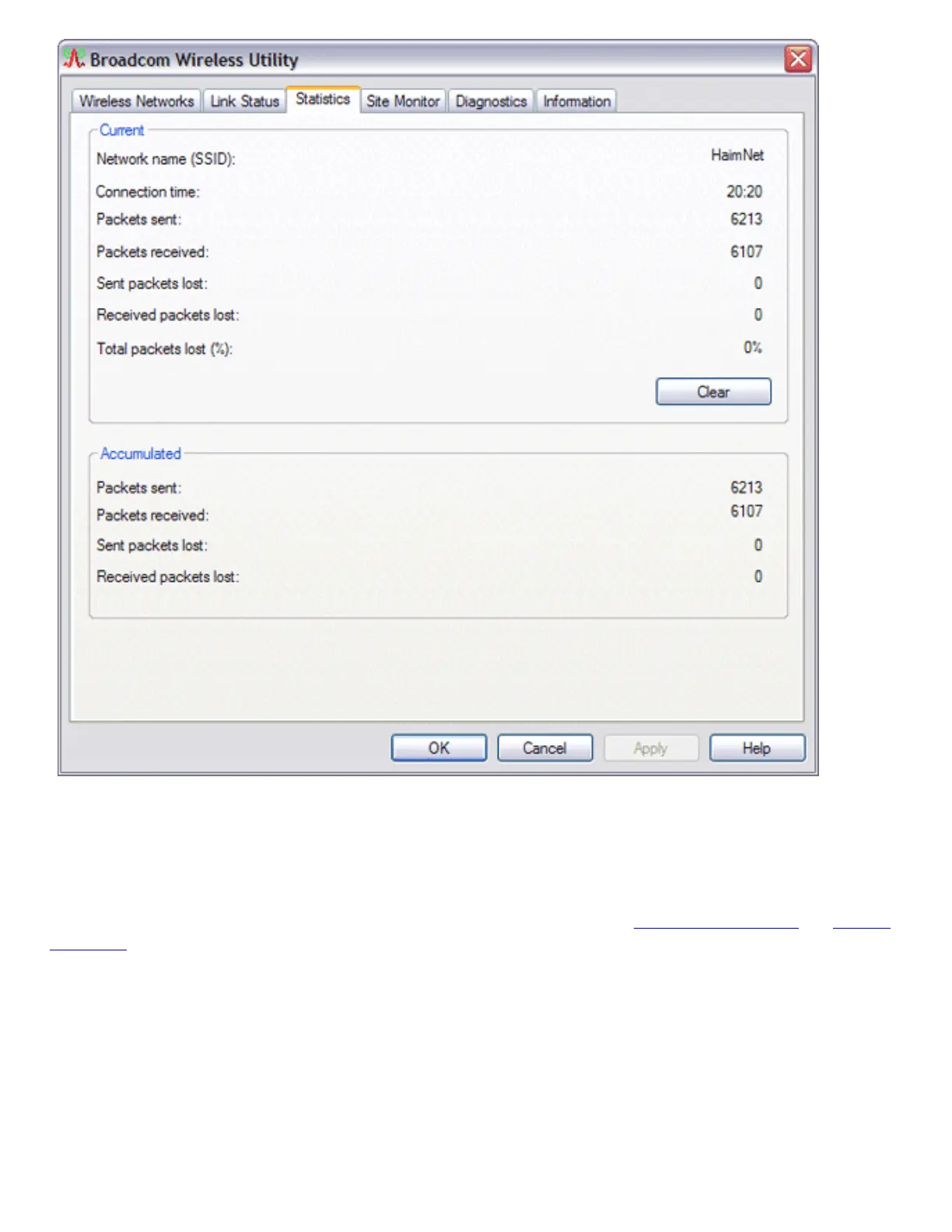 lists the wireless router/AP or ad hoc network. The network information is shown under Selected Network.