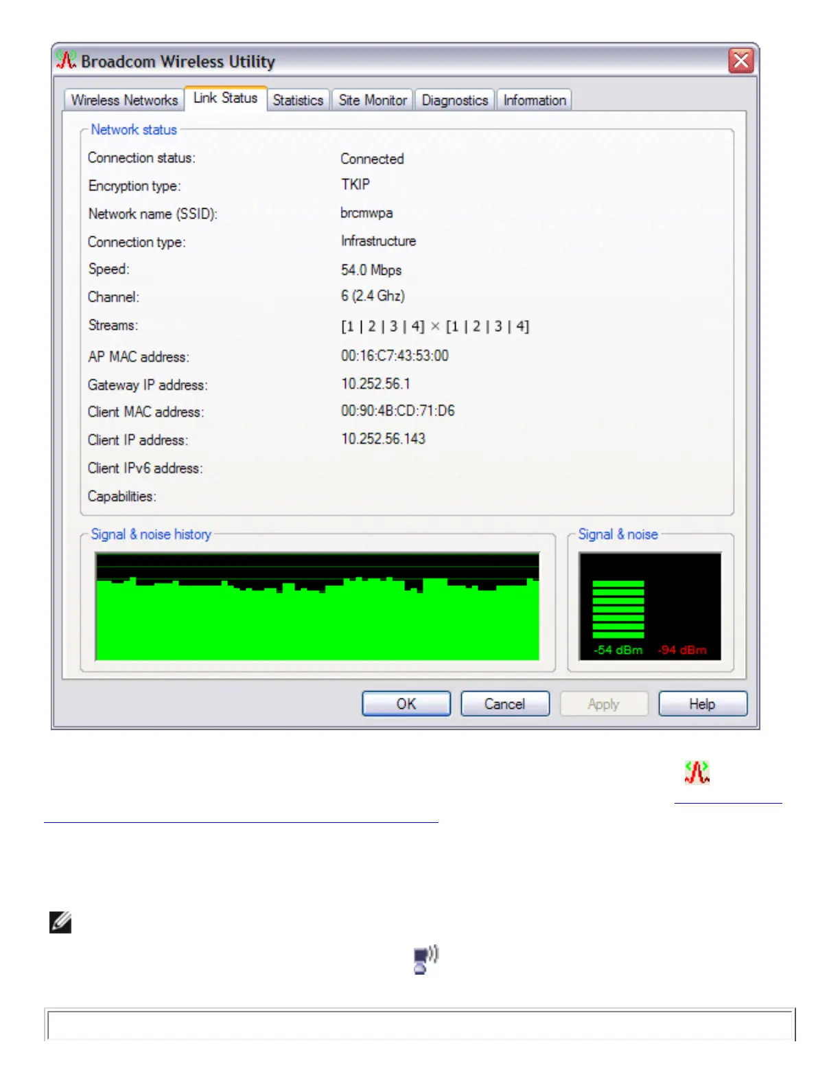 Strength Indicated by the Broadcom Wireless Utility Icon for details).