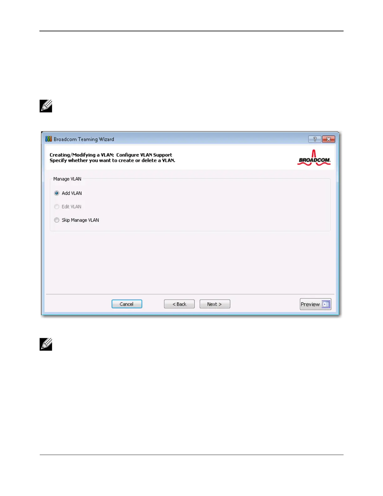 Note: VLANs can only be created when all team members are Broadcom adapters.