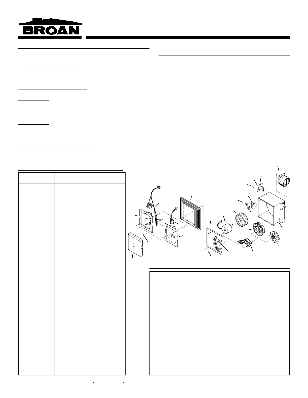Durante el período de un año, y a su propio criterio, Broan-NuTone reparará o reemplazará, sin costo alguno cualquier