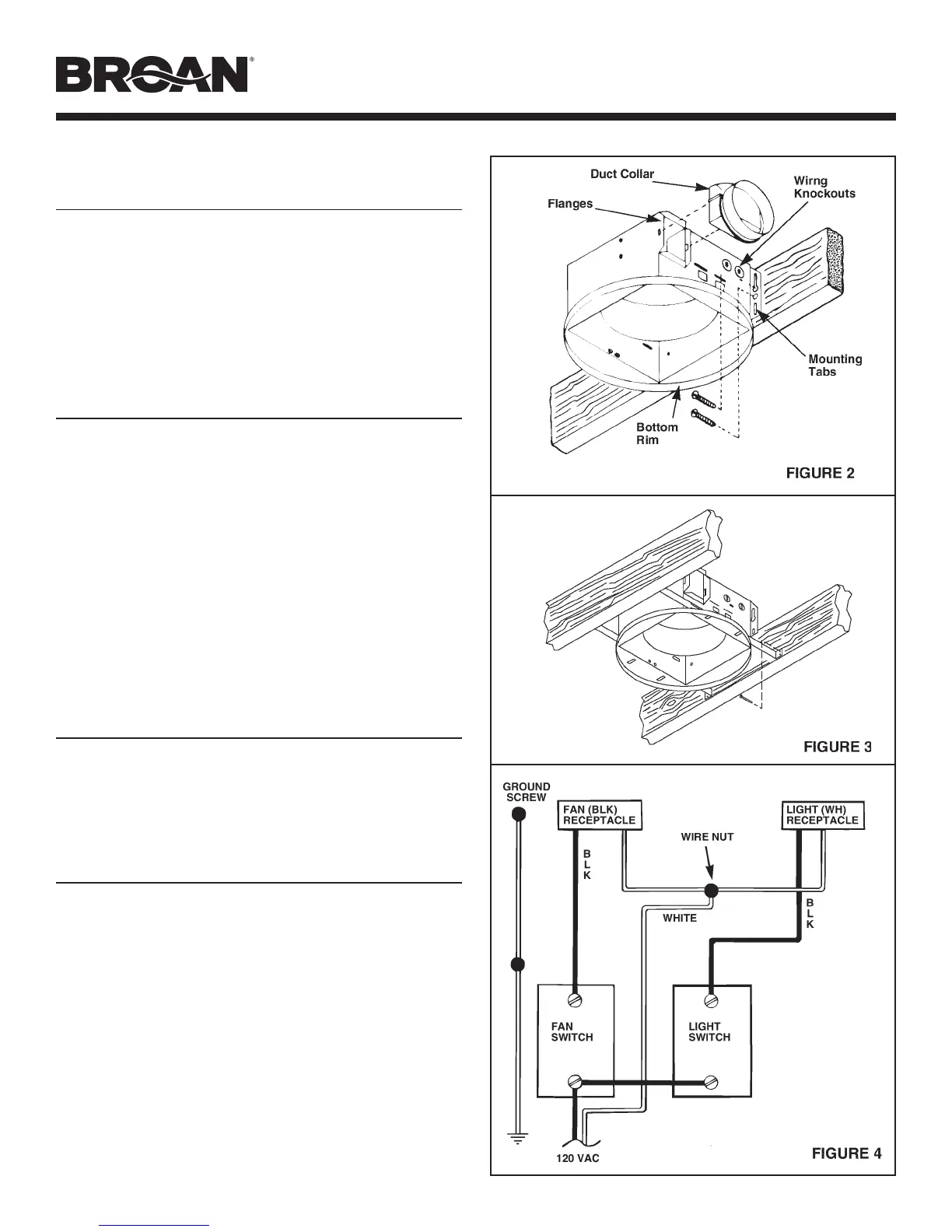 2. Locate fan housing between joists so that the bottom of the