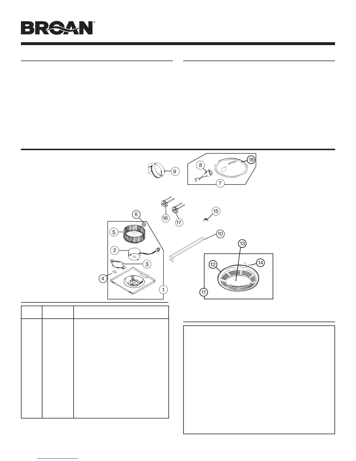 Broan-NuTone LLC, 926 West State Street, Hartford, WI 53027 (1-800-637-1453)