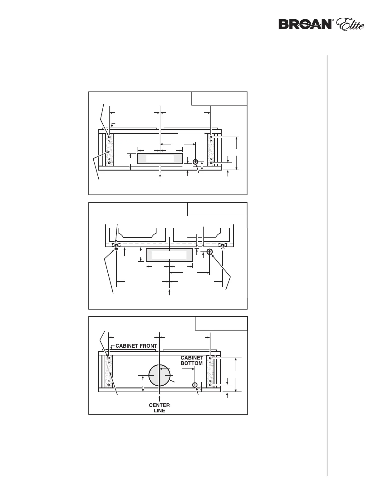 1 ] Use the proper diagram below for placement of ductwork and electrical cutout in cabinet