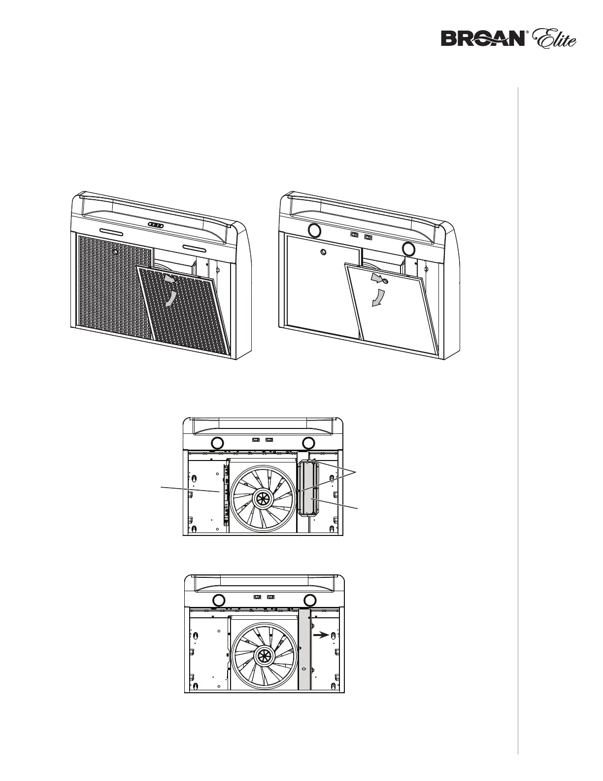 2 ] Using the finger cup, remove the grease filters from the hood by pushing down and tilting