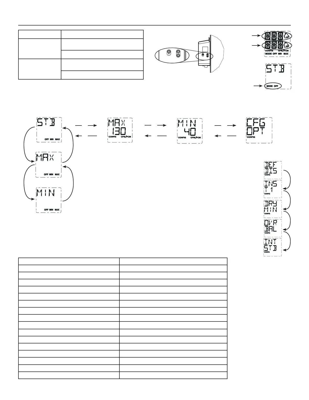 PRESS ON + BUTTON OR - BUTTON TO MODIFY MAX CFM, MIN CFM OR OPTIONS CONFIGURATION.