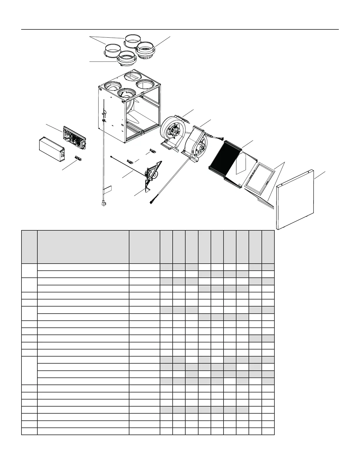 ** See next page to get the part number that corresponds to the ventilation unit model.