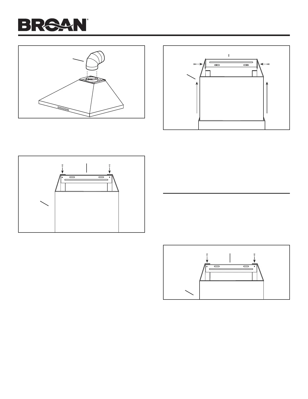 6. Carefully place both flues into the recessed area of hood top.