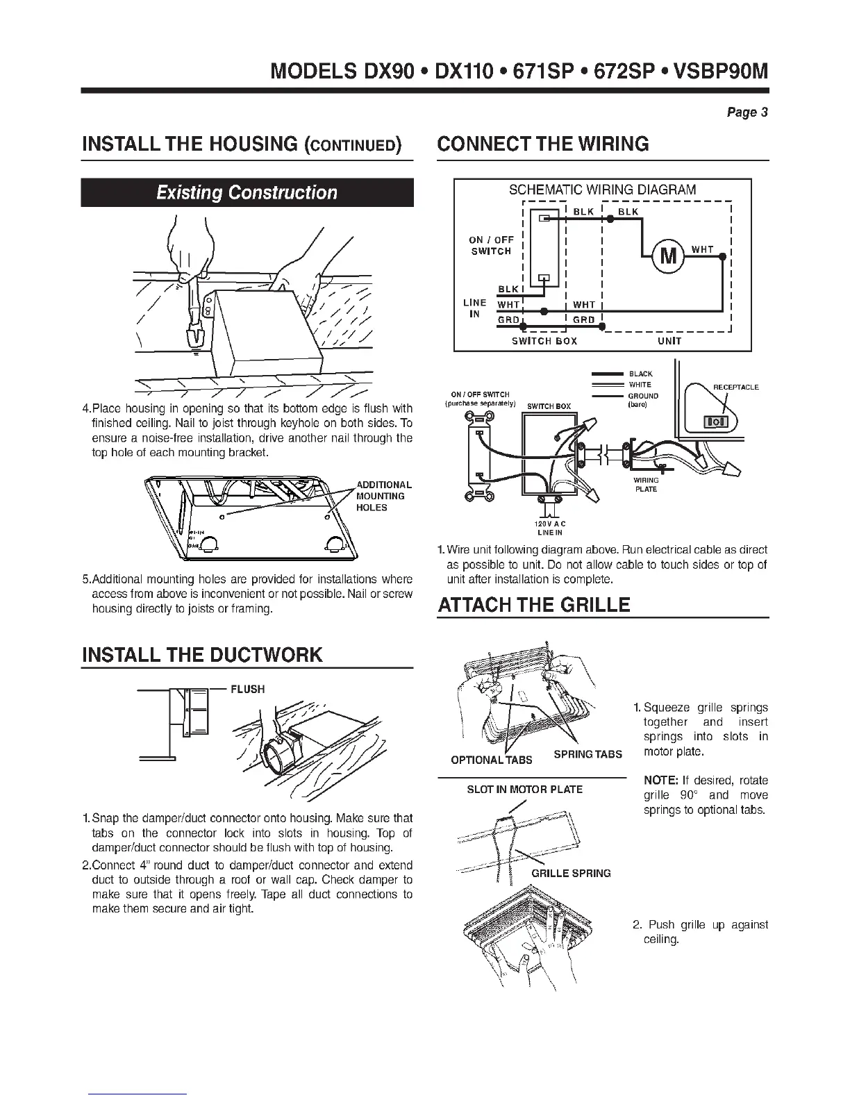 Broan DX90 - Connect the Wiring and Attach the Grille; Wiring Diagram and Connection; Grille Attachment