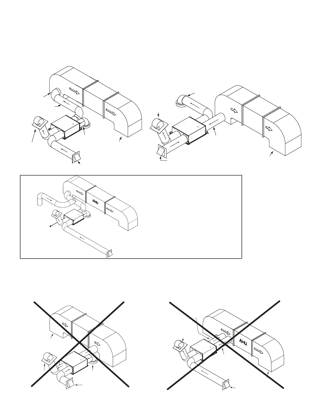 the connection should be done as close as possible from one AHU return grille to ensure proper functionning of the built-in