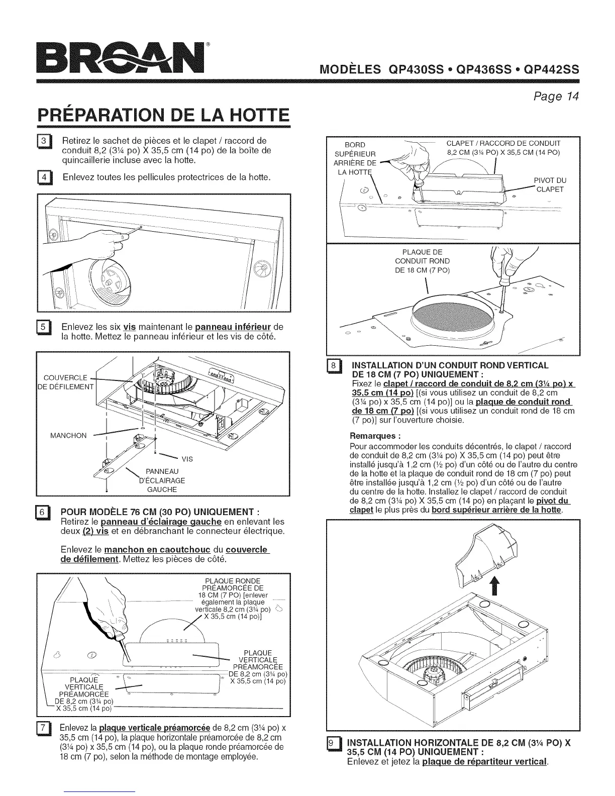 (31Apo) x 35,5 cm (14 po)] ou la plaque de conduit tonal
