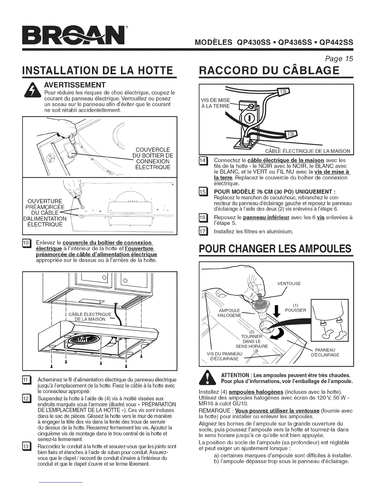 Installez (4) ampoules halo _g__Ae_s_(incluses avec la hotte).