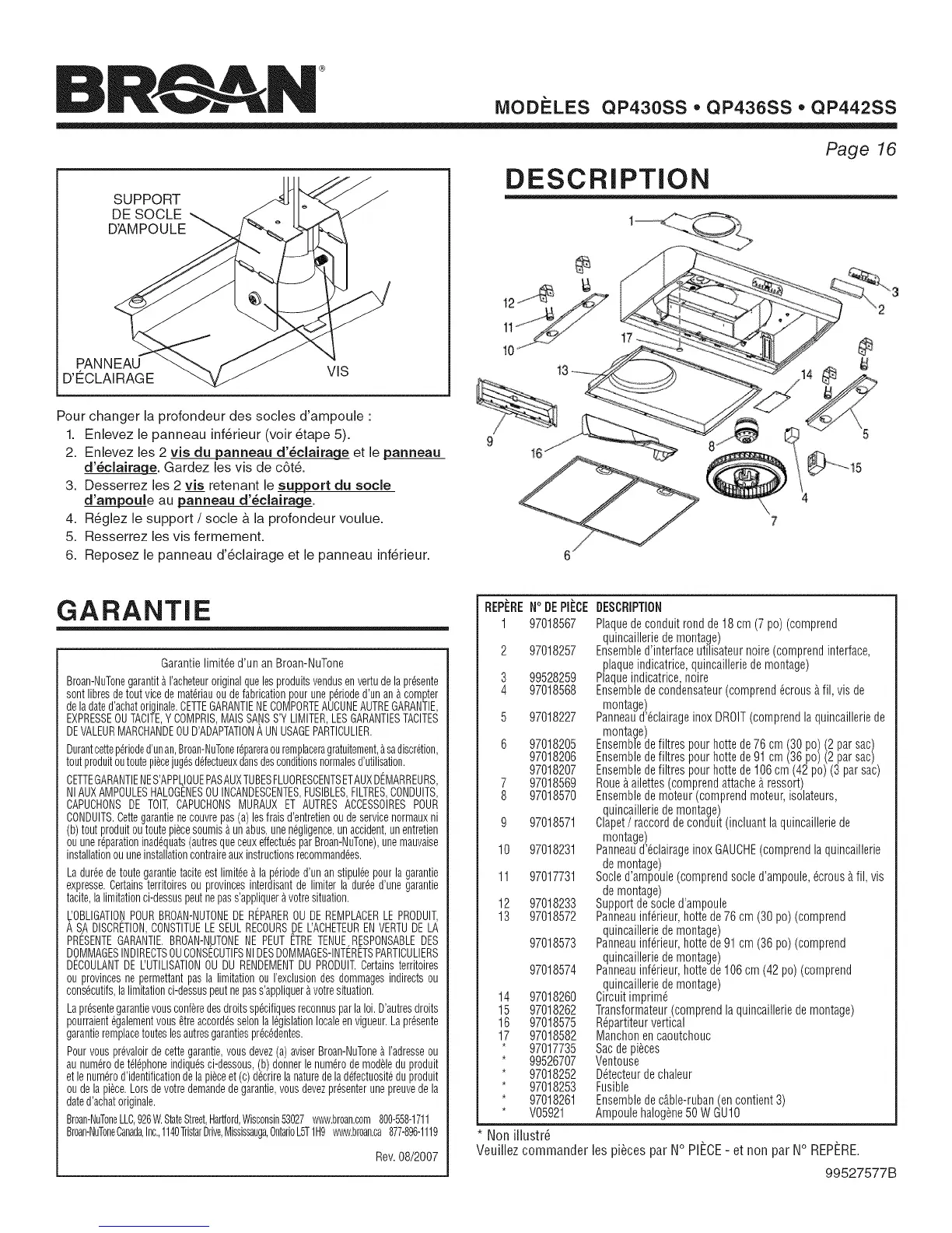 Broan-NuTonegarantit&I'acheteuroriginalquelesproduitsvendusenvertude laprGsente