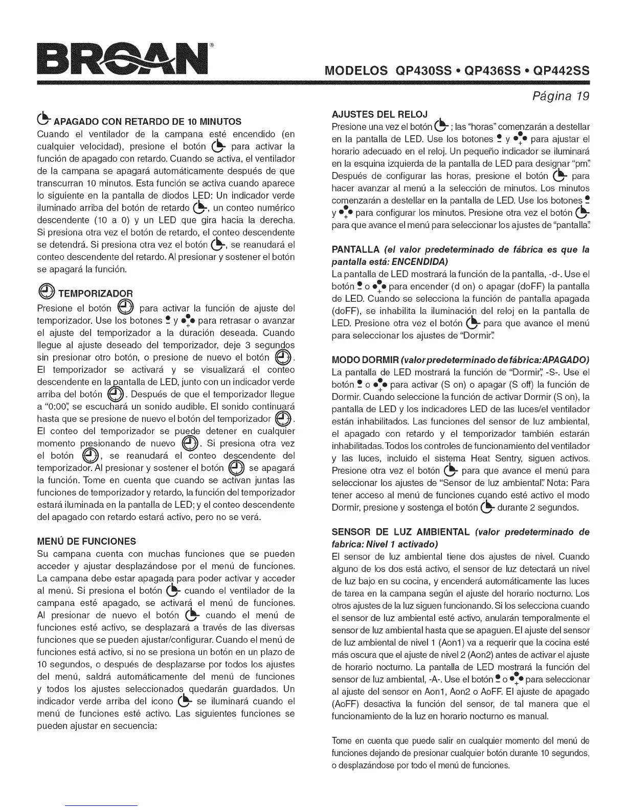 funci6n de apagado con retardo. Cuando se activa, el ventilador