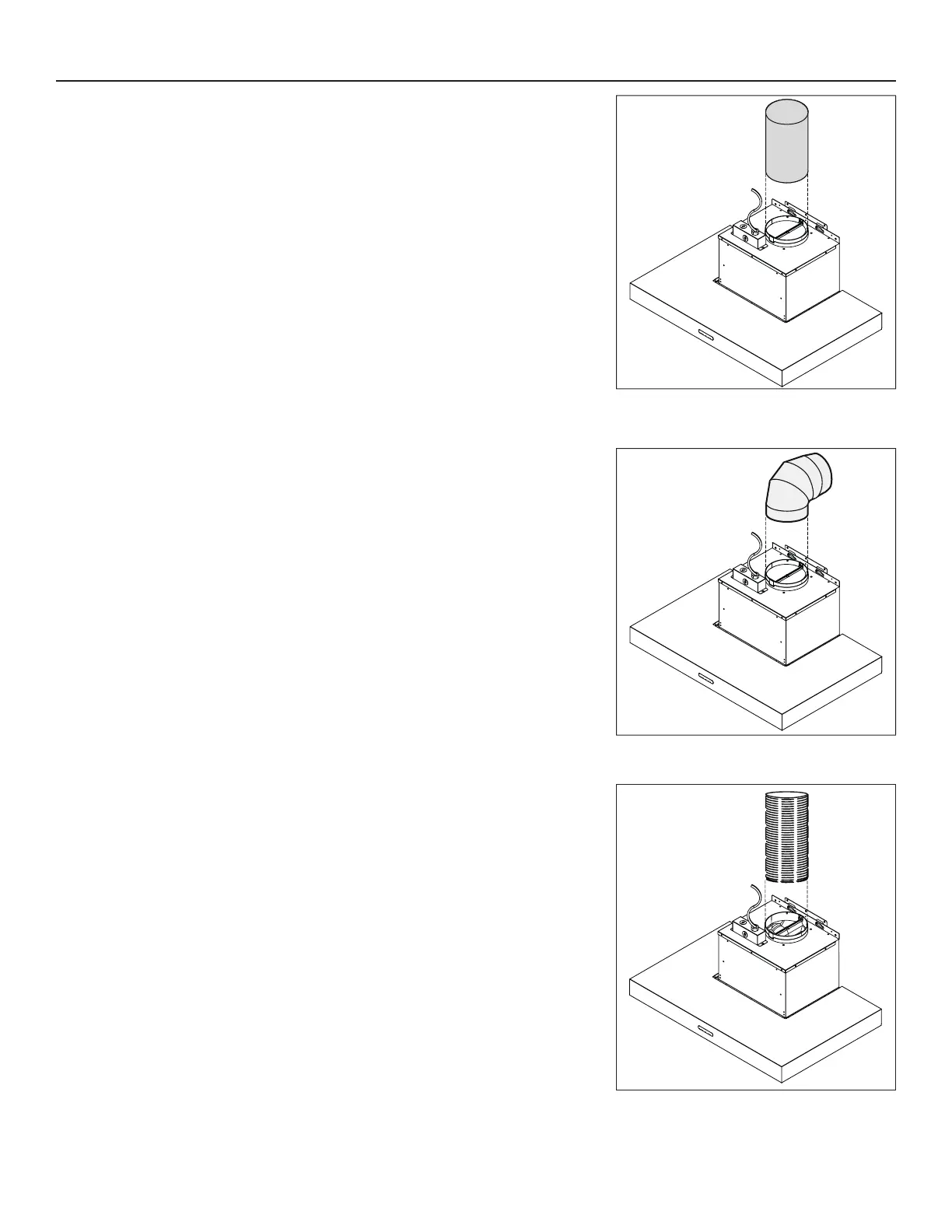 of 6” round flexible duct (included in the non-duct kit) required from the top of the hood to