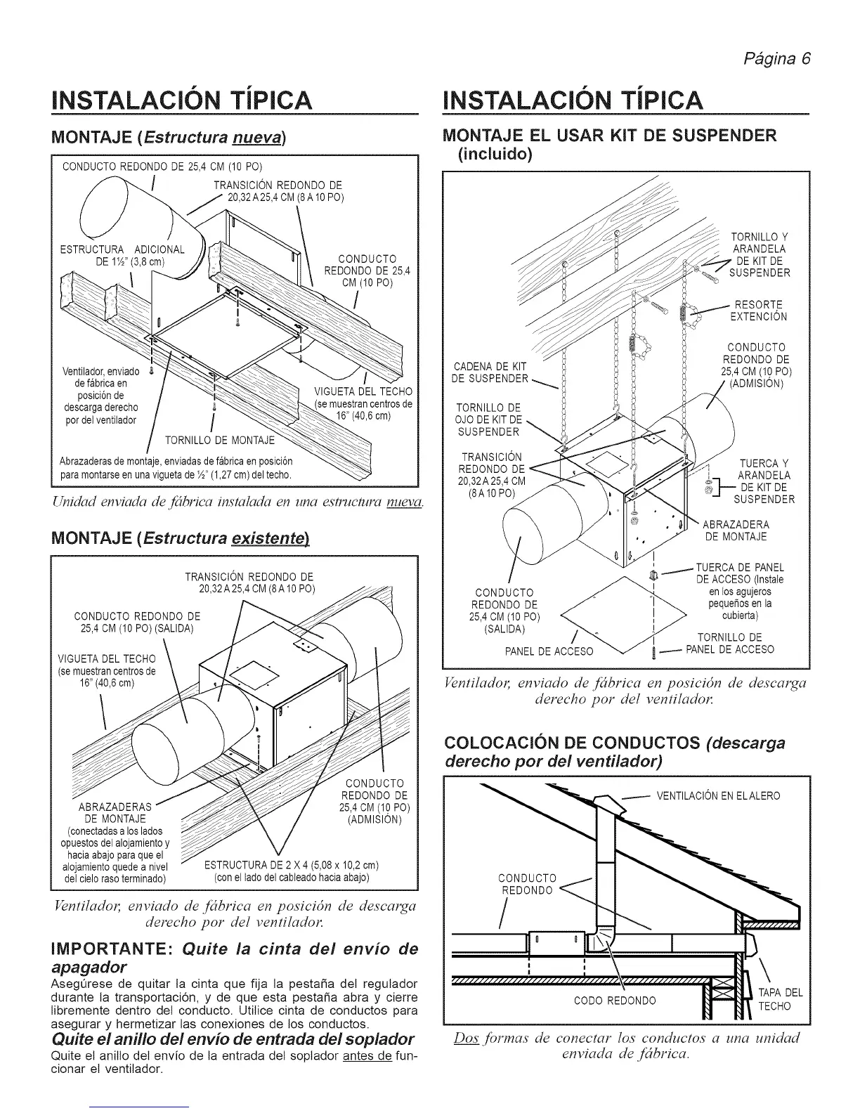 libremente dentro det conducto. Utitice cinta de conductos para