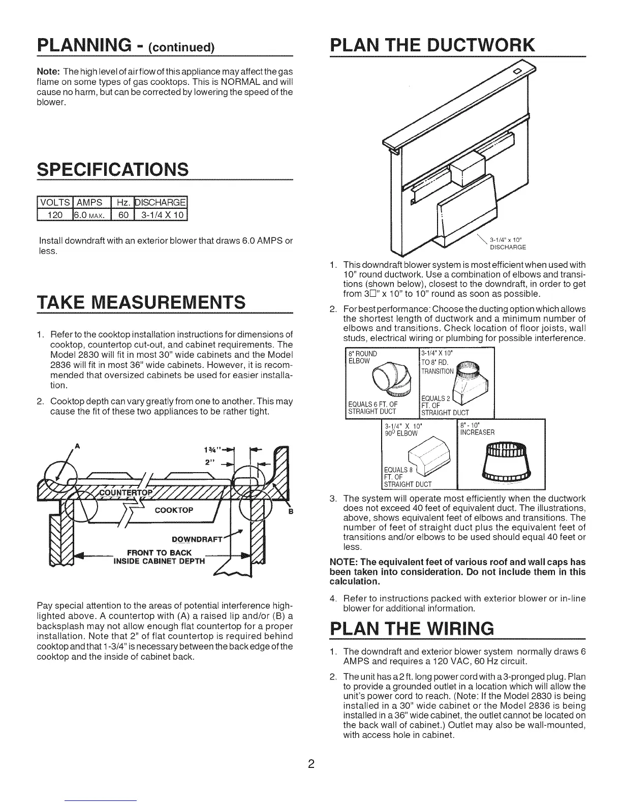 Install downdraft with an exterior blower that draws 6.0 AMPS or