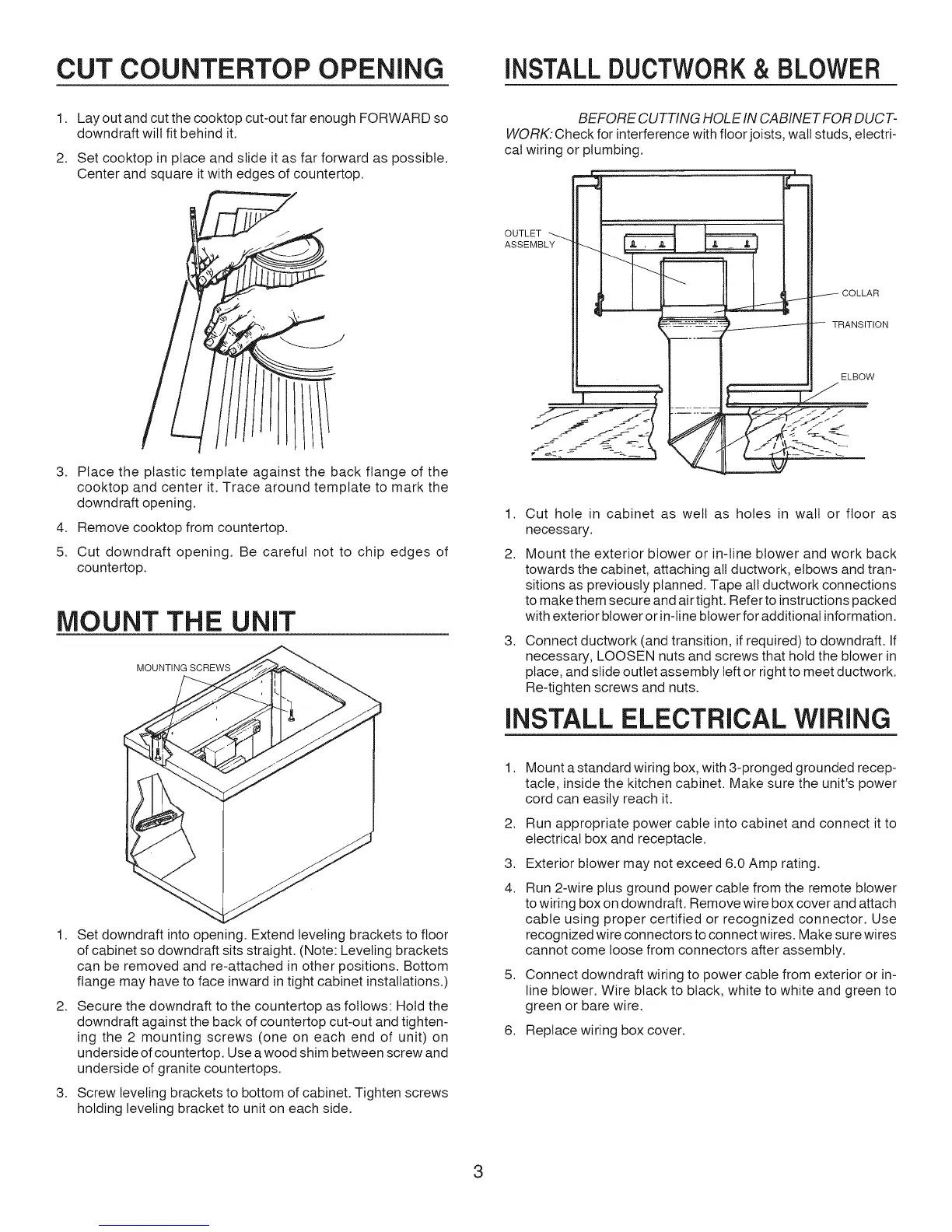 CUT COUNTERTOP OPENING INSTALLDUCTWORK& BLOWER