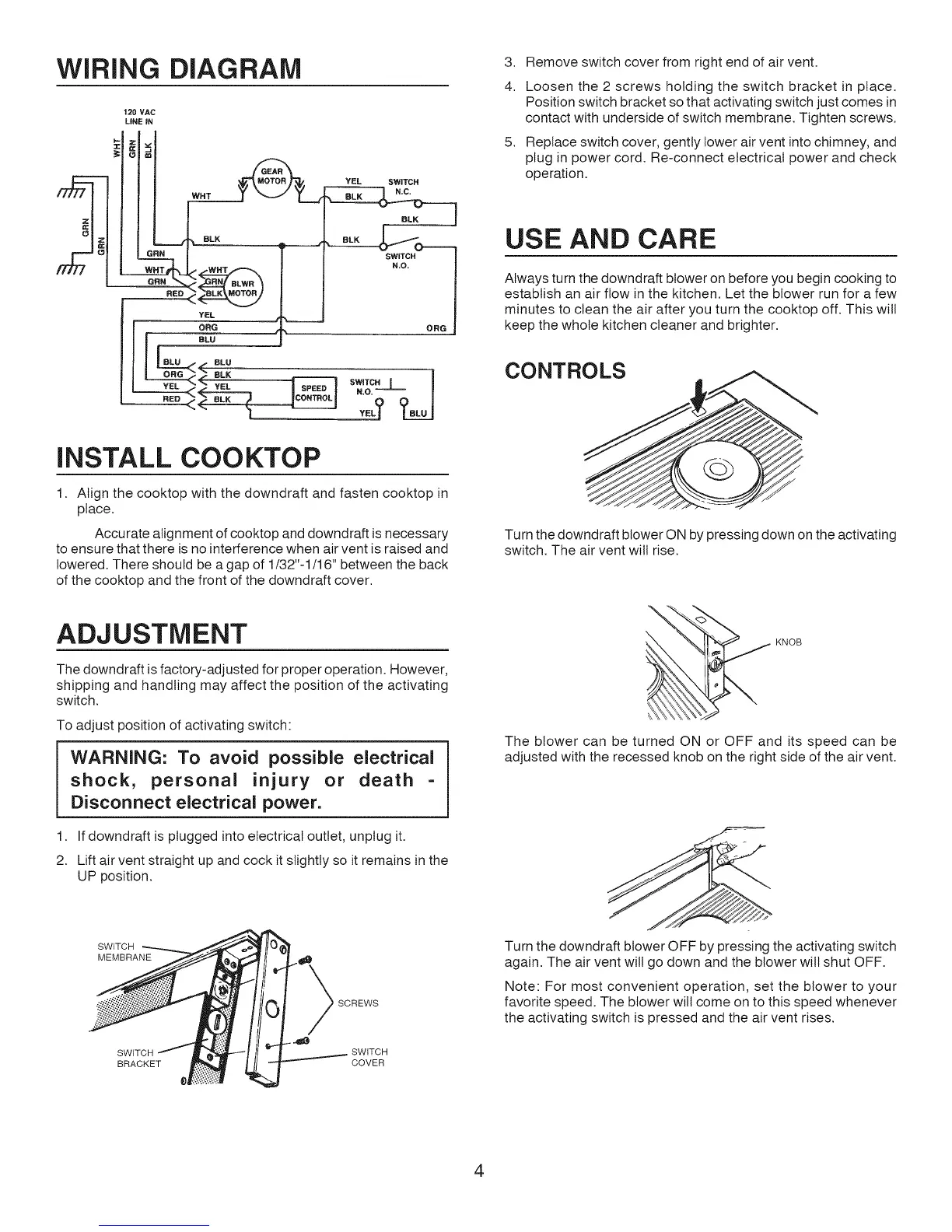 The downdraft is factory-adjusted for proper operation. However,