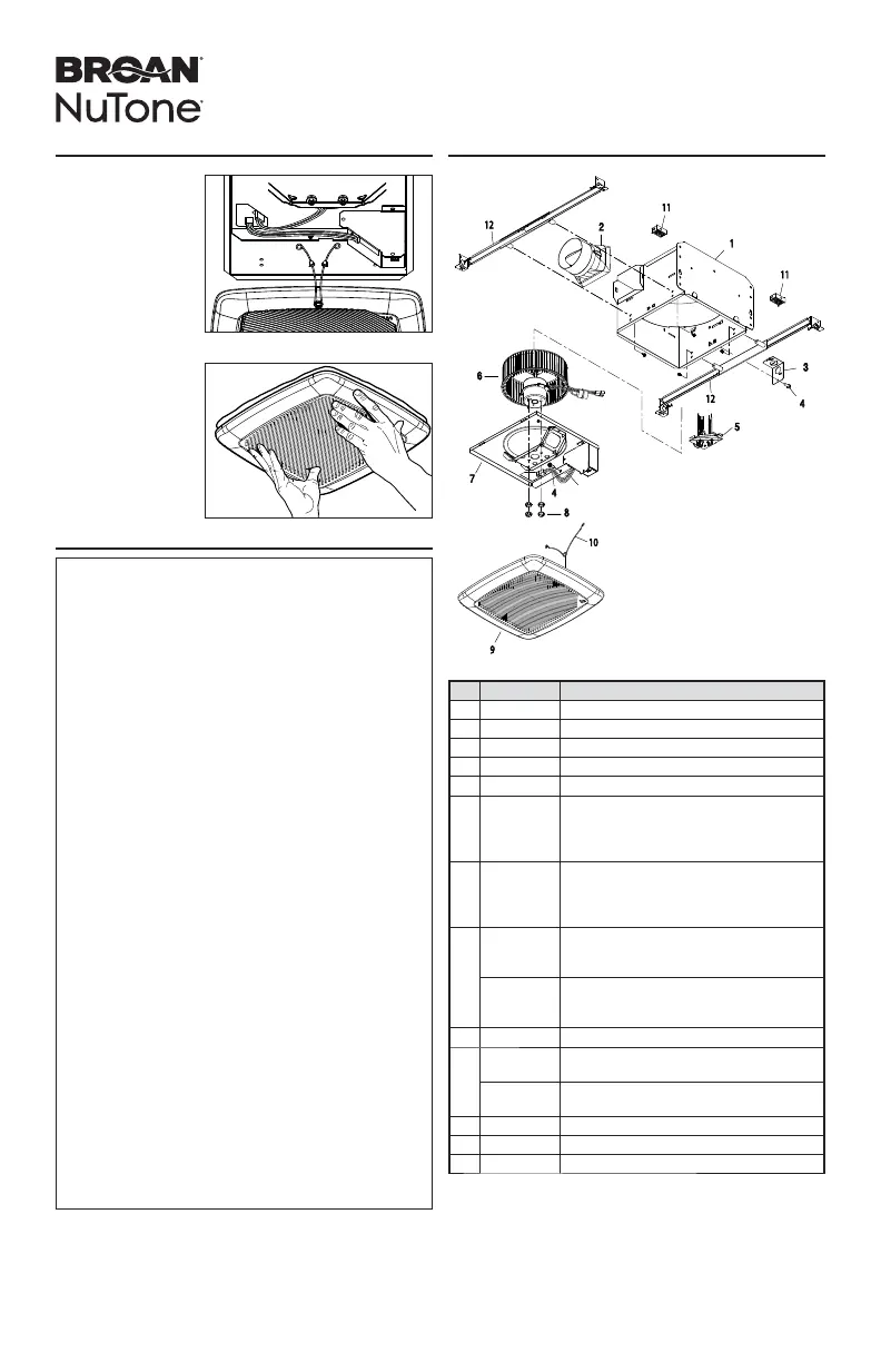 Broan-NuTone pour vos pièces de remplacement et appels de service.