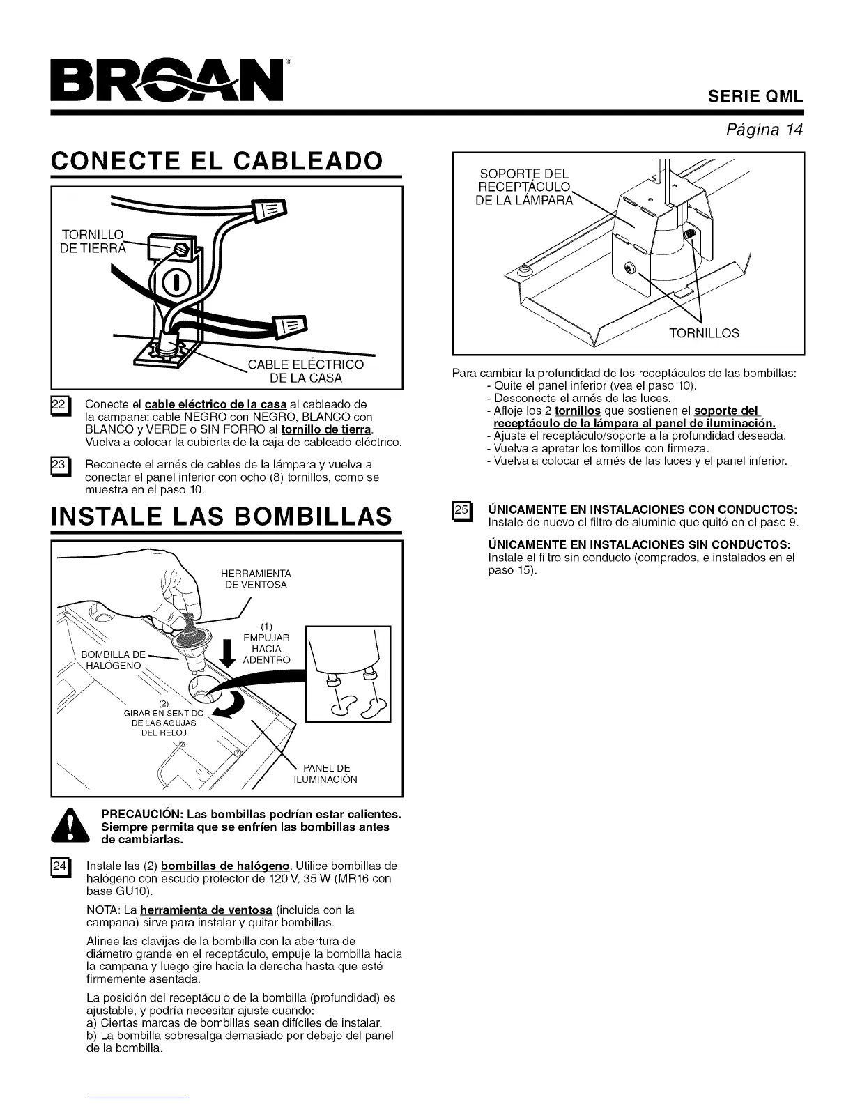 PRECAUCION: Las bombillas podrian estar calientes.