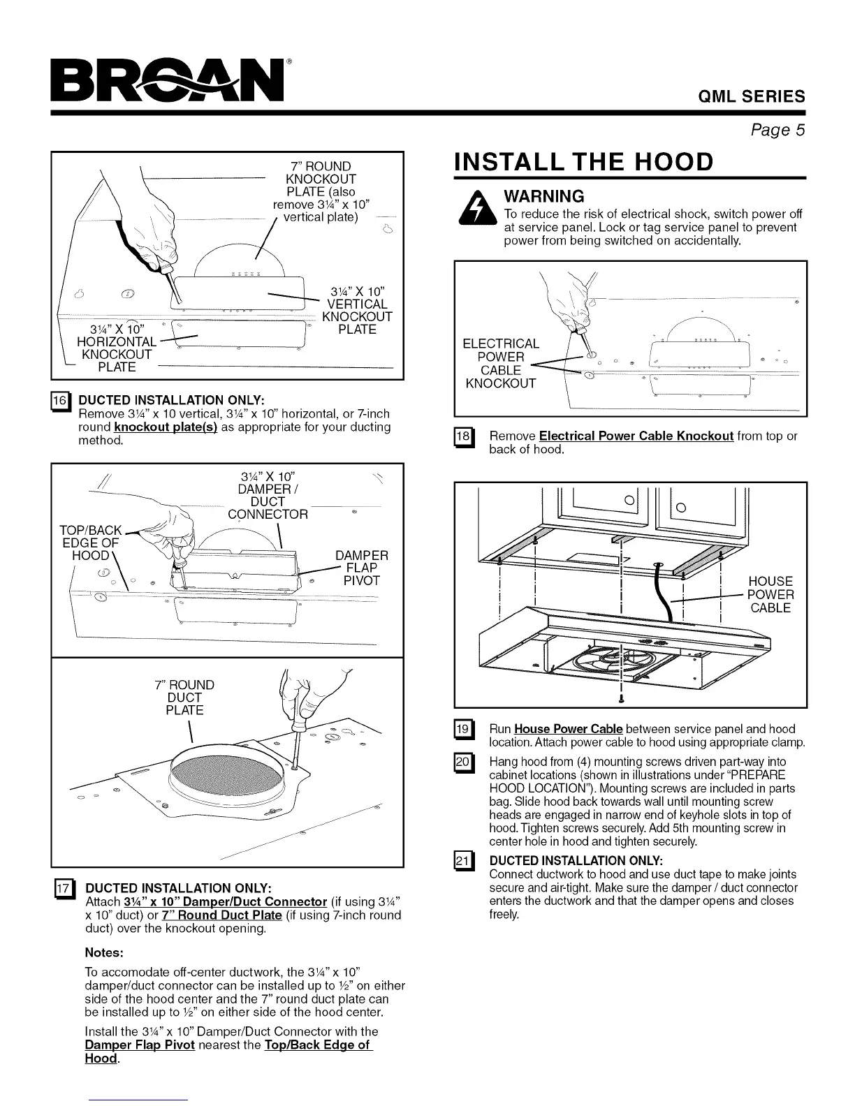 _'_ DUCTED INSTALLATION ONLY: