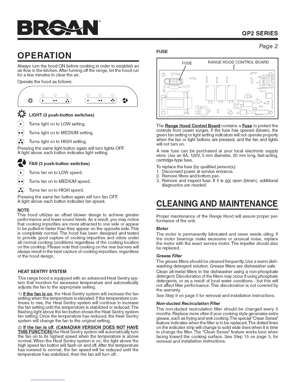 2) If the fan is off (CANADIAN VERSION DOES NOT HAVE