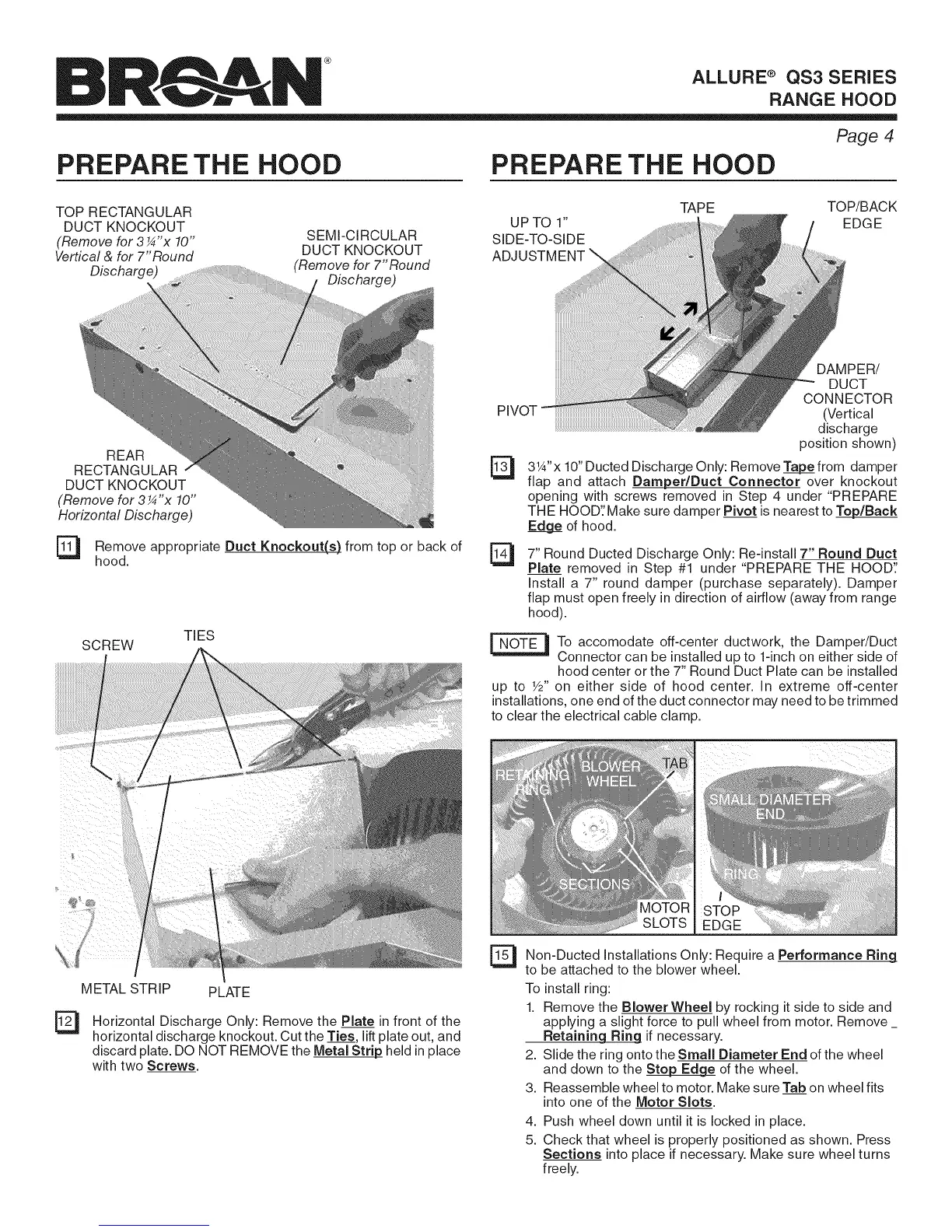 Vertical & for 7"Round DUCT KNOCKOUT ADJUSTMENT \