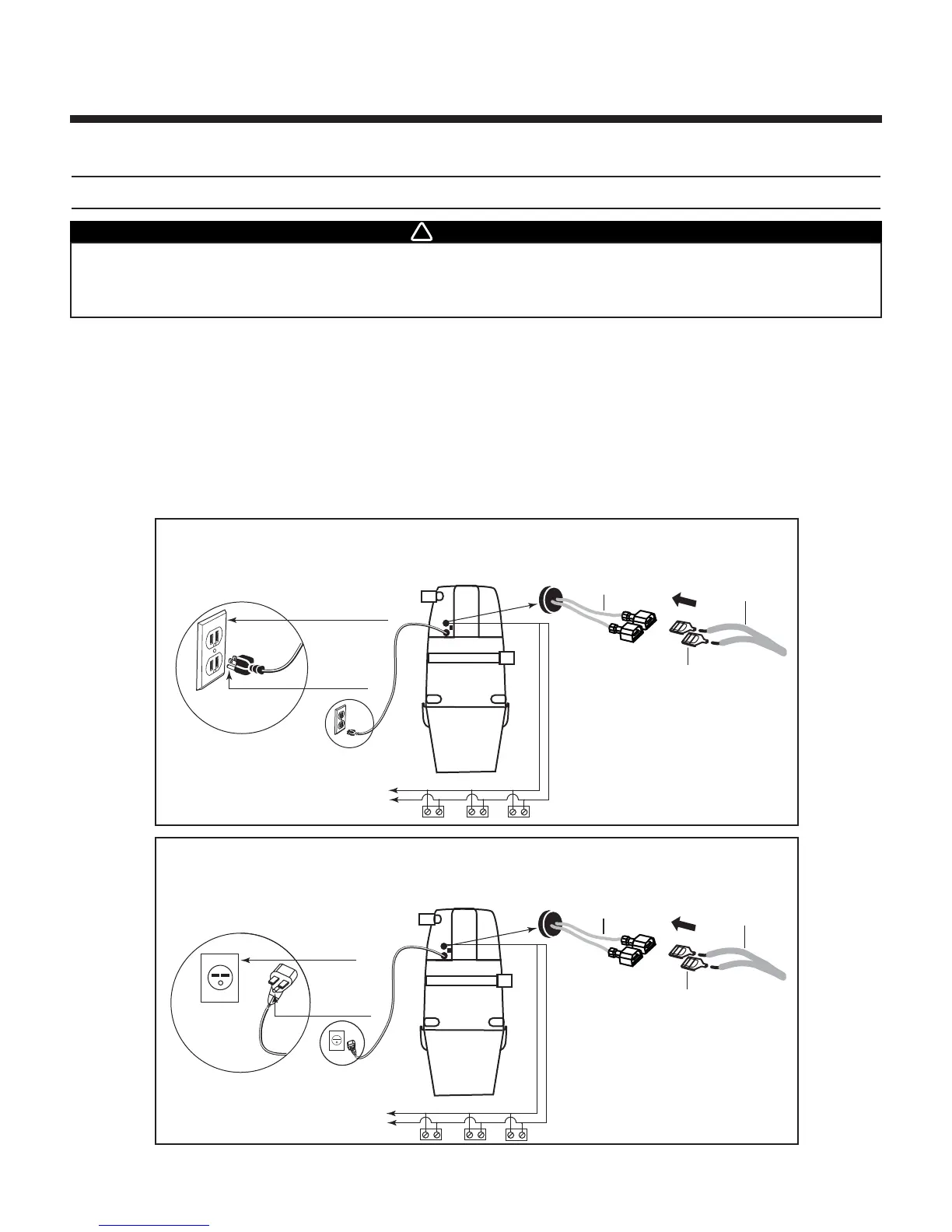 20-amp branch circuit with a NEMA 5-20R receptacle for Broan models VX3000C and VX6000C. For Broan model VX12000C, a