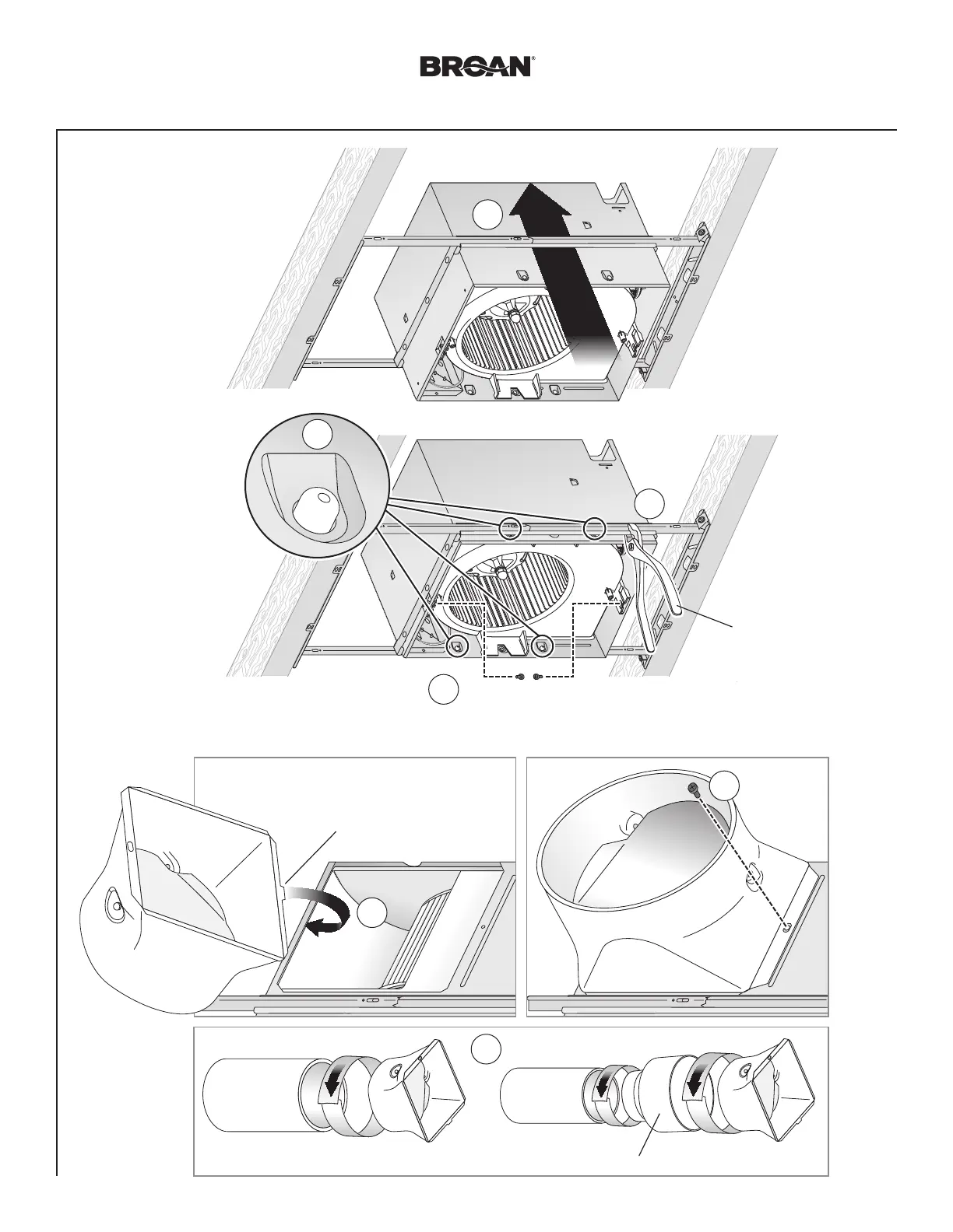 Broan XB80 - Step 3: Snap-in and Secure Housing; Step 4: Attach Duct Connector and Ducting
