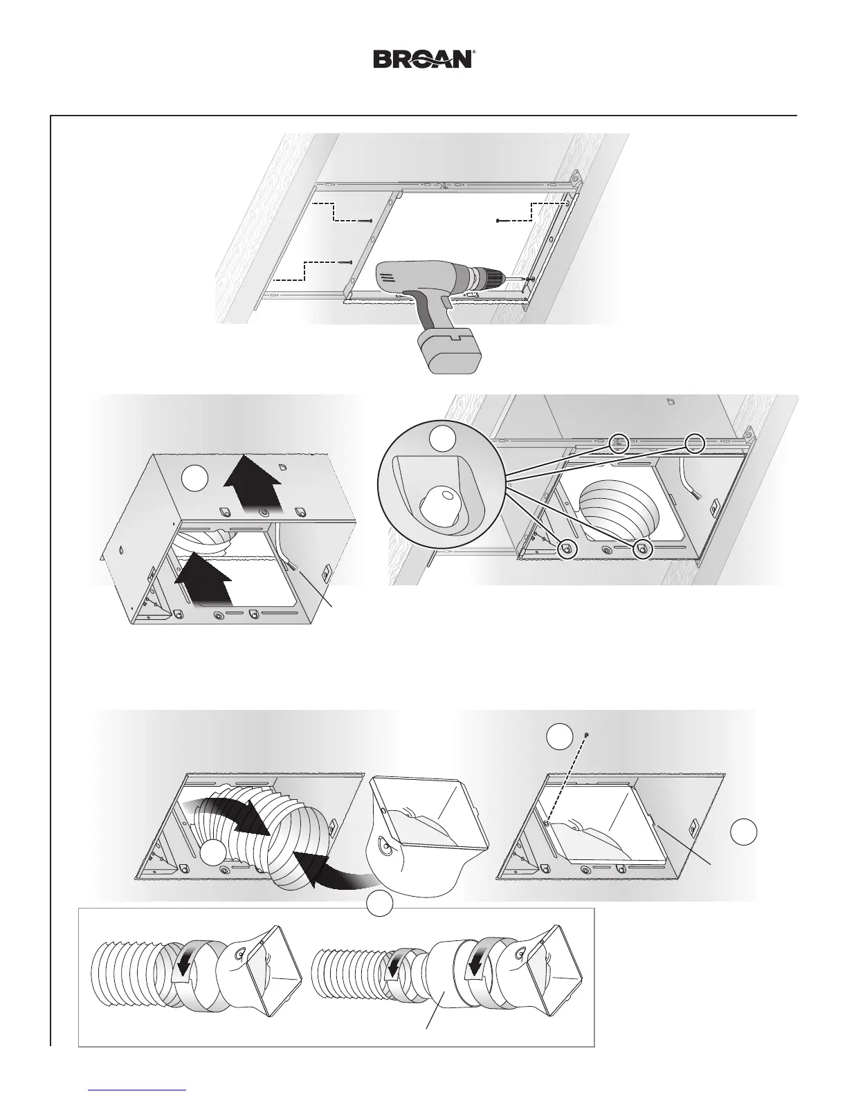 Broan ZB110 - Secure Mounting Frame; Snap-in Housing; Attach Ducting and Duct Connector