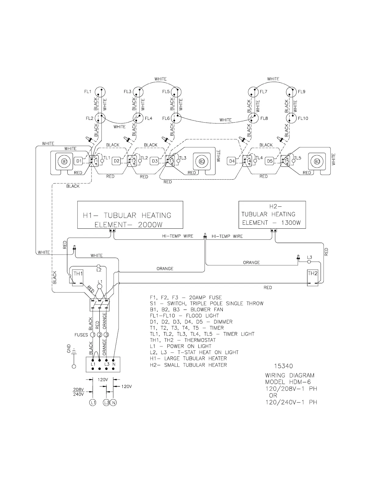 Broaster PERFECT HOLD HDM-4 - Model HDM-6 Single Phase Wiring Diagram