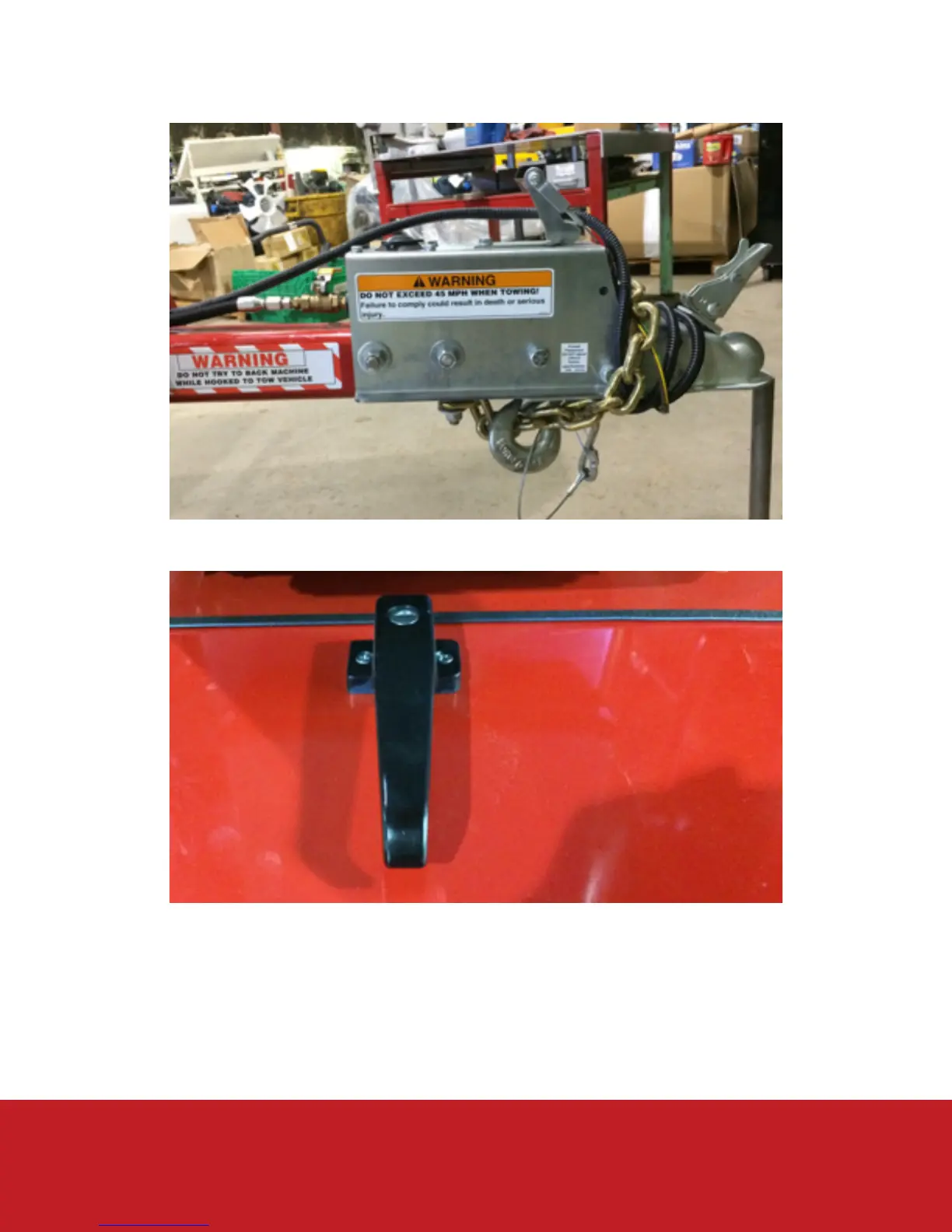 Broce BW-260 - TOWING HITCH & HOOD LATCH LOCATIONS; TOWING HITCH ASSEMBLY; HOOD LATCH