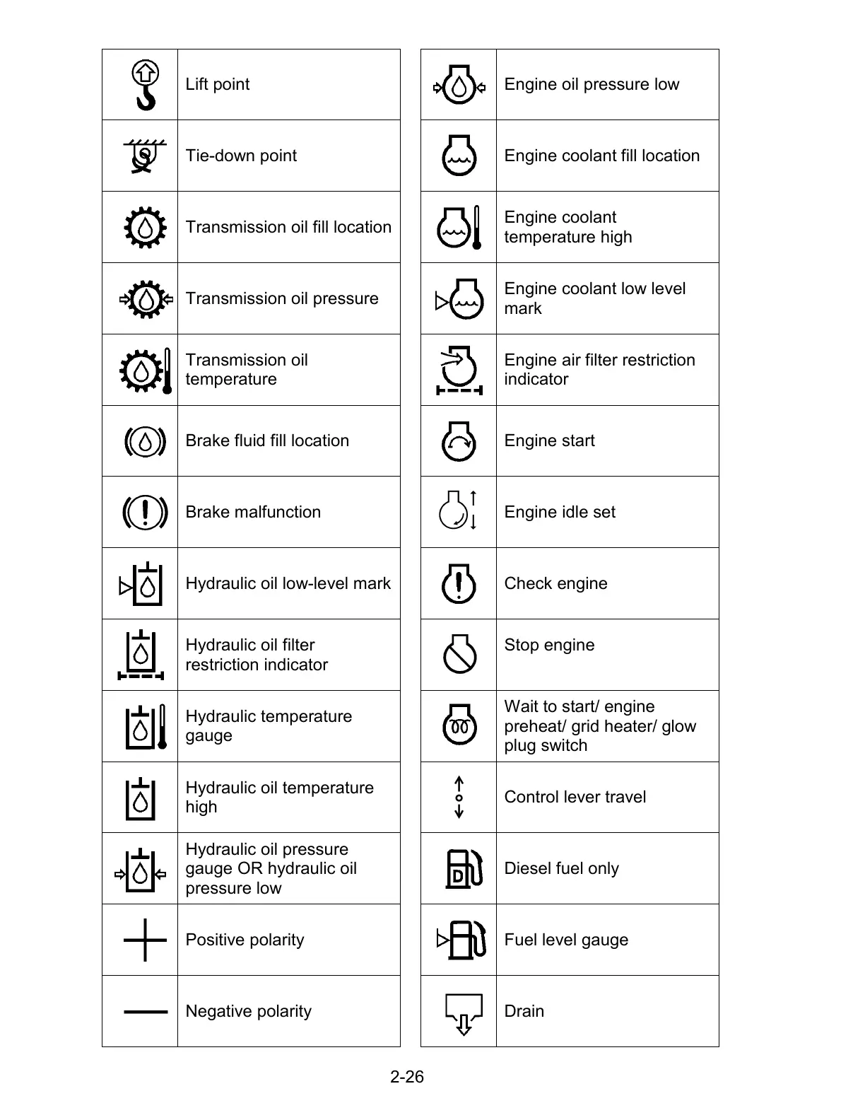 Hydraulic oil low-level mark