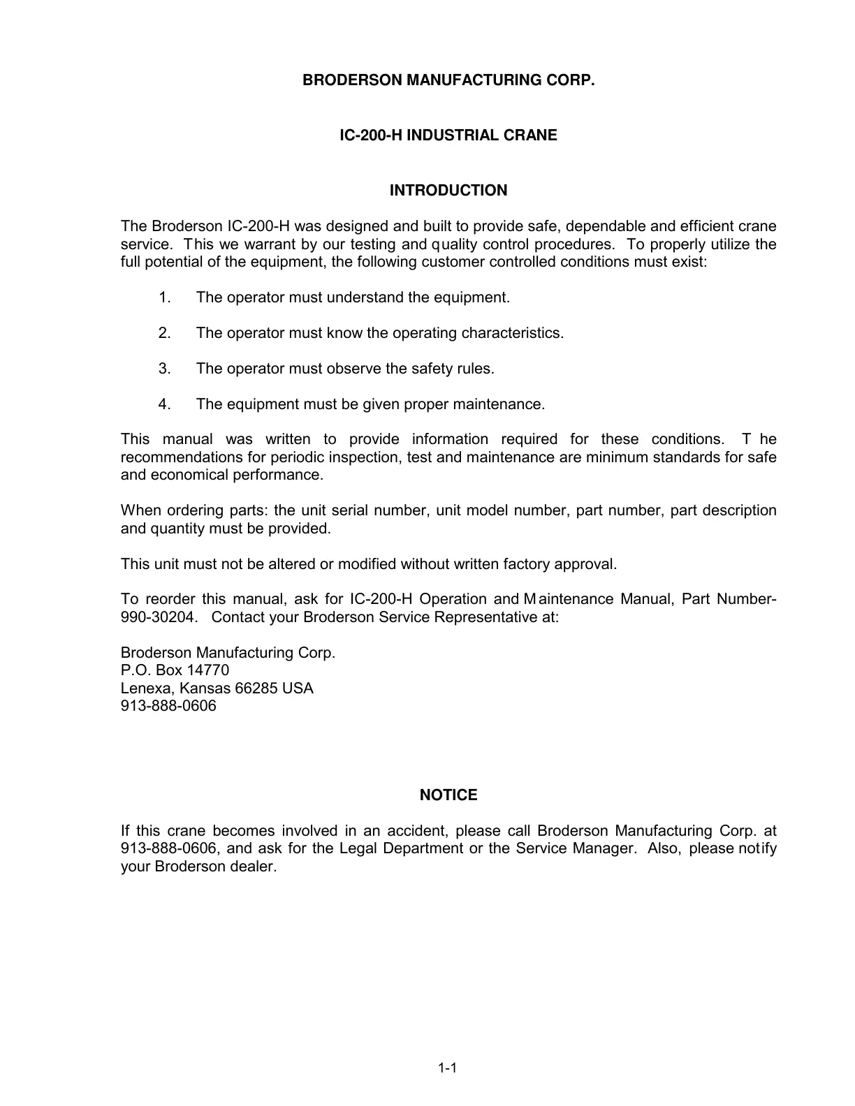 990-30204. Contact your Broderson Service Representative at: