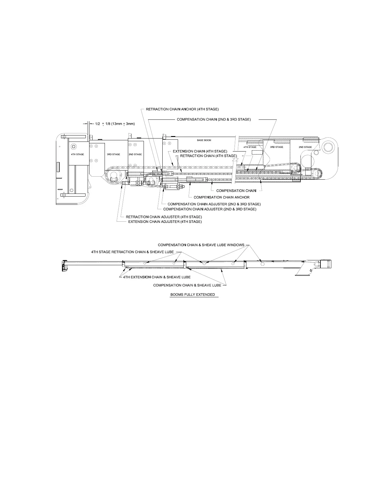 ly and grease sheave fittings. Do not attempt to grease chain shafts or oil chains inside boom