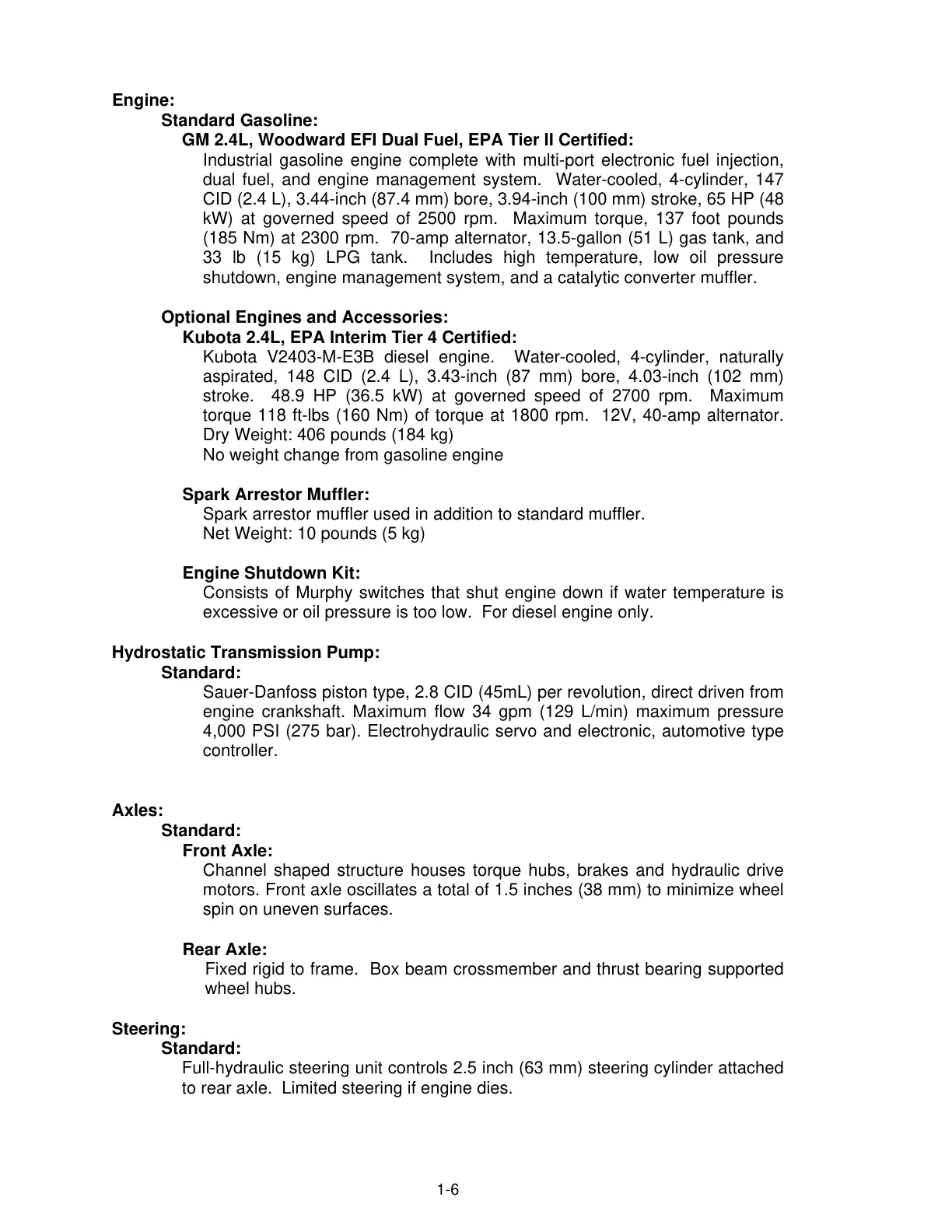 kW) at governed speed of 2500 rpm. Maximum torque, 137 foot pounds