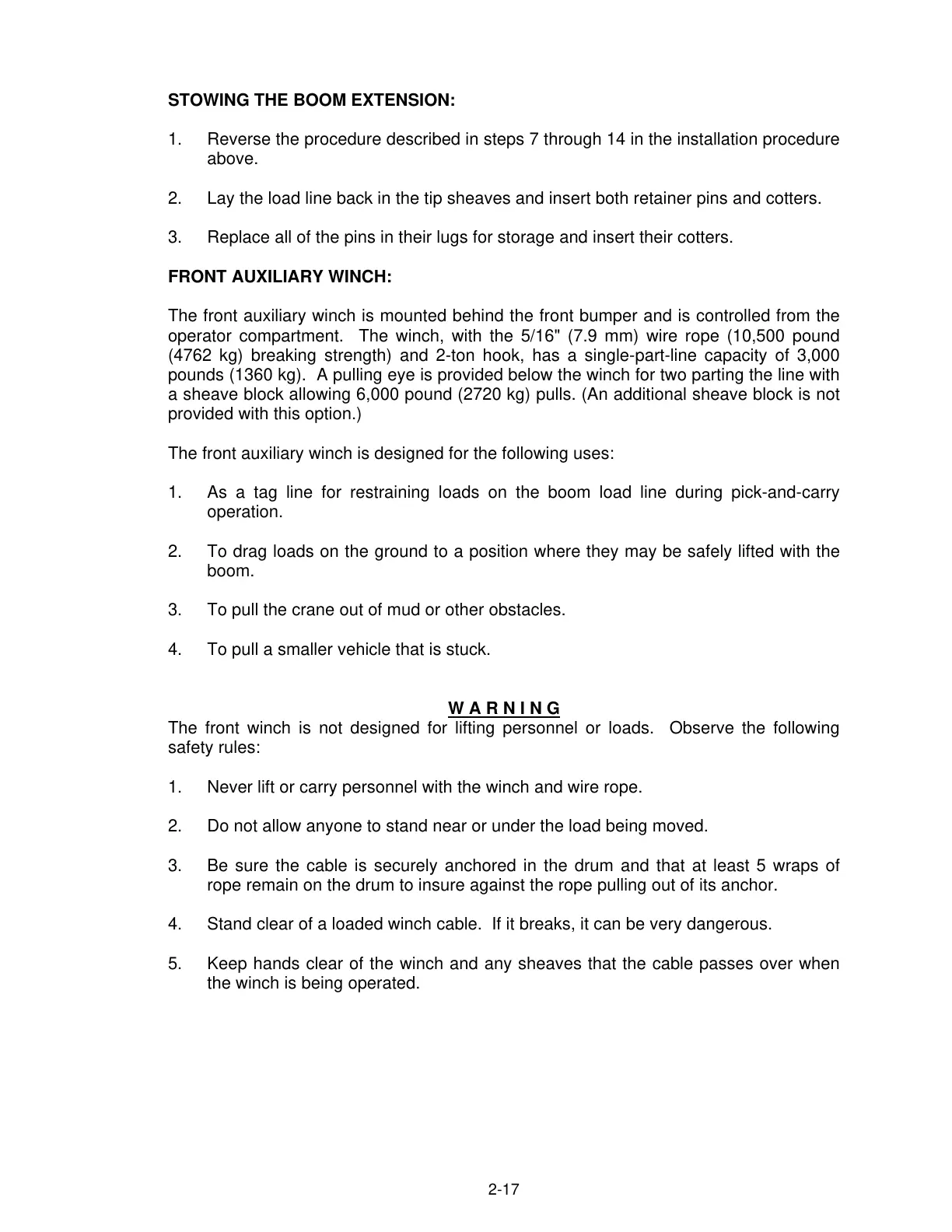 1. Never lift or carry personnel with the winch and wire rope.
