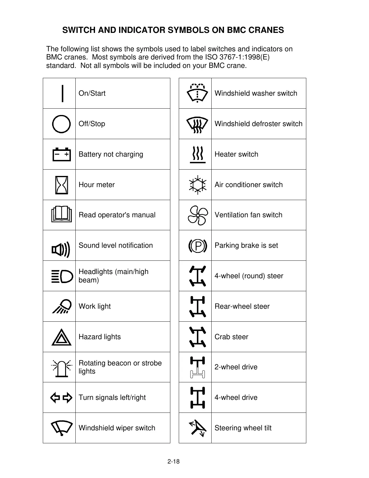 standard. Not all symbols will be included on your BMC crane.