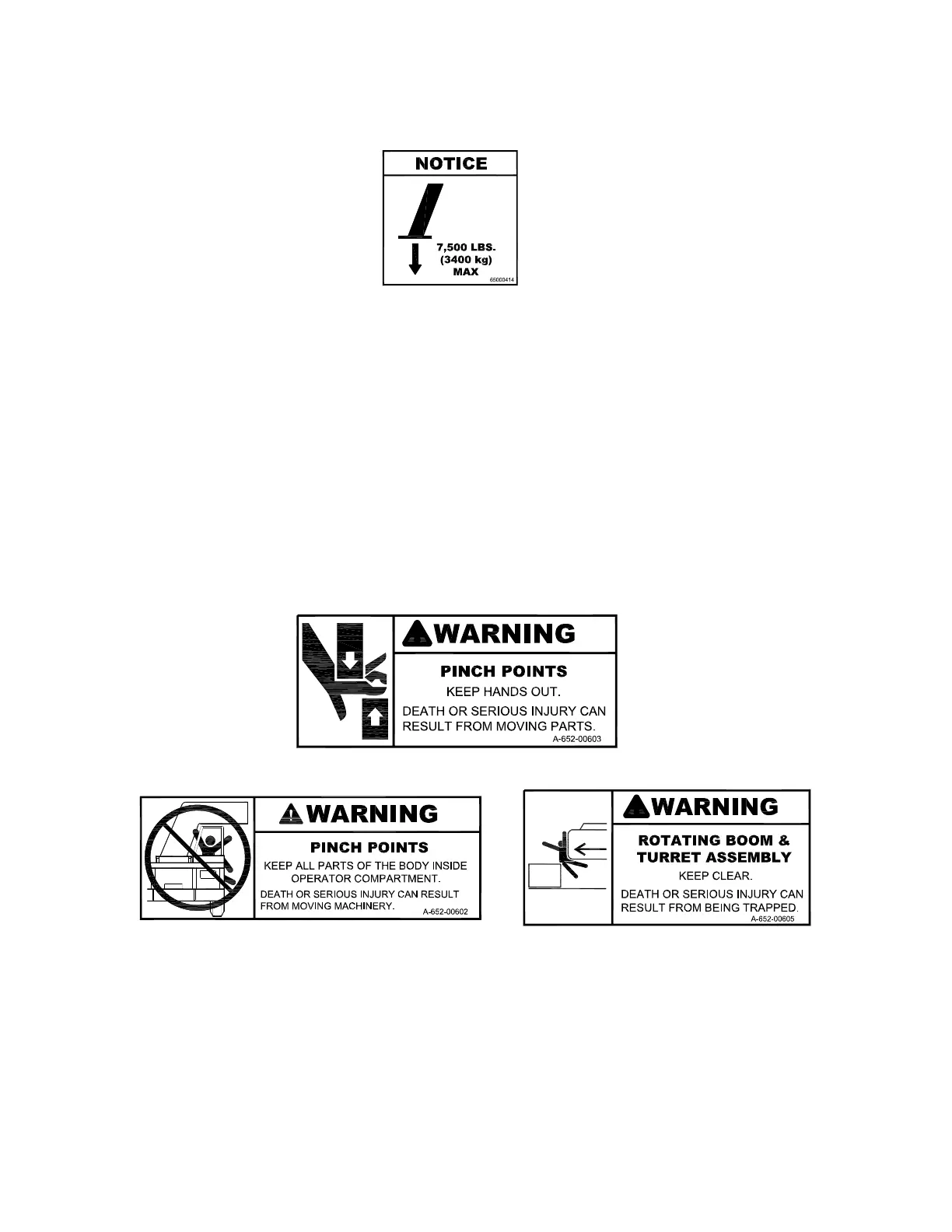16. Avoid pinch points such as between a rotating turret and the cab, in access holes of a