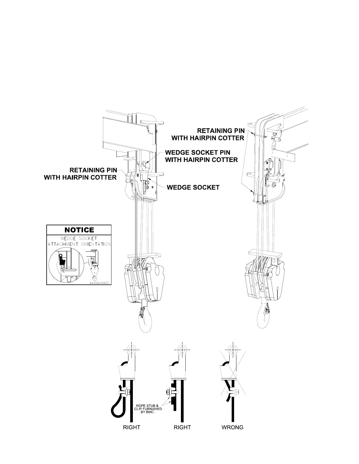 should be pinned to the wedge socket anchor at the boom tip, as shown in the figure. The
