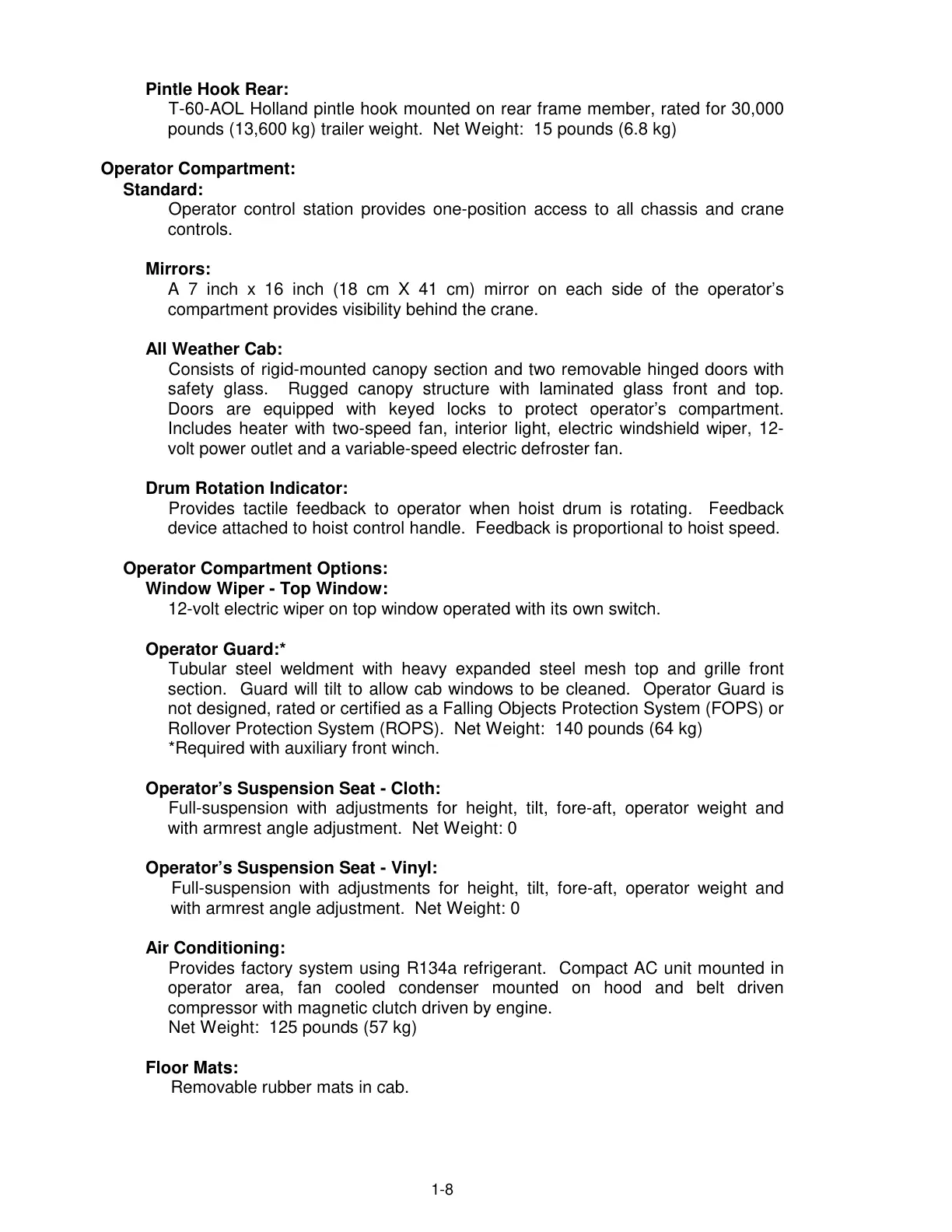 Rollover Protection System (ROPS). Net Weight: 140 pounds (64 kg)