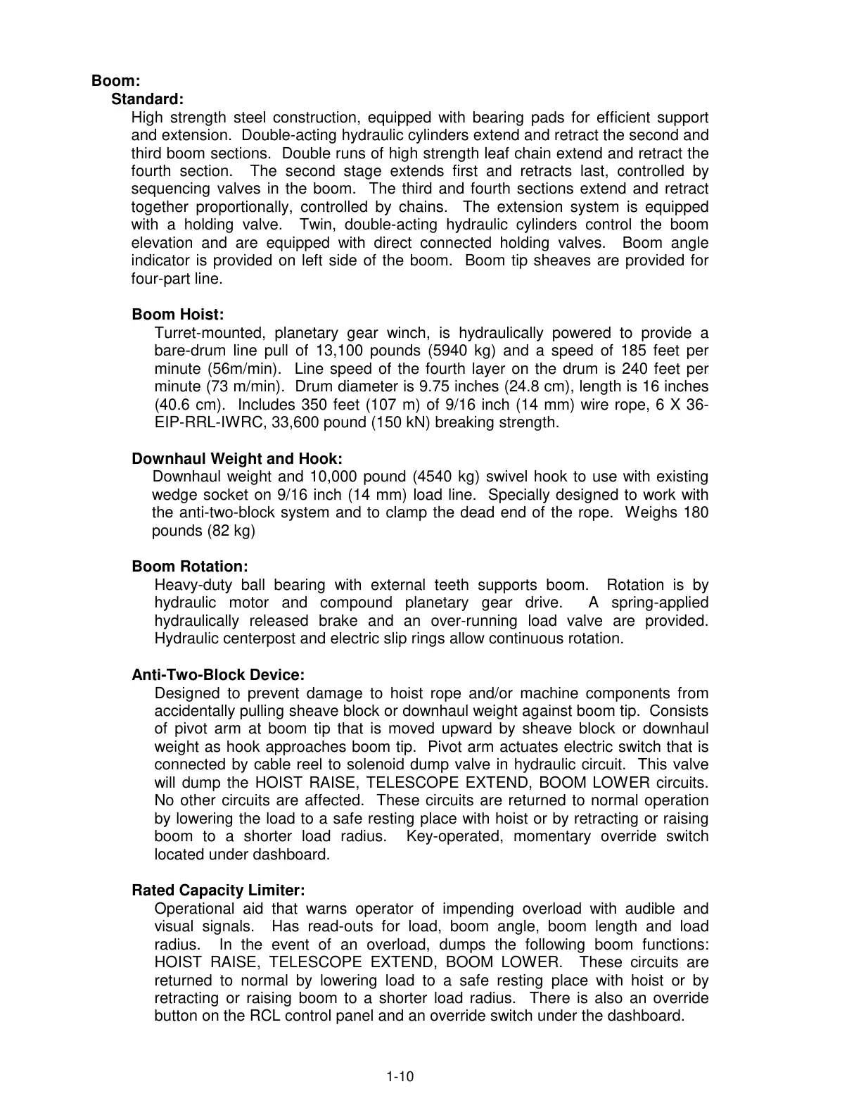 retracting or raising boom to a shorter load radius. There is also an override