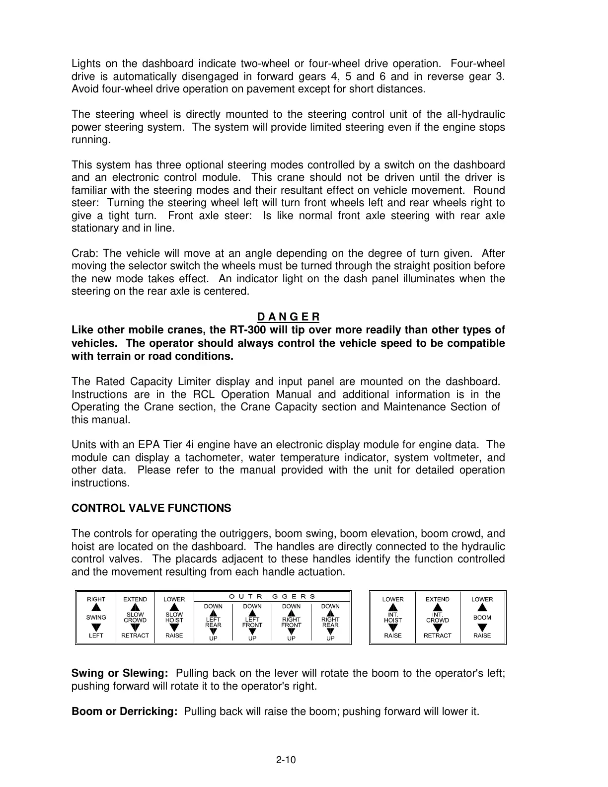 Like other mobile cranes, the RT-300 will tip over more readily than other types of