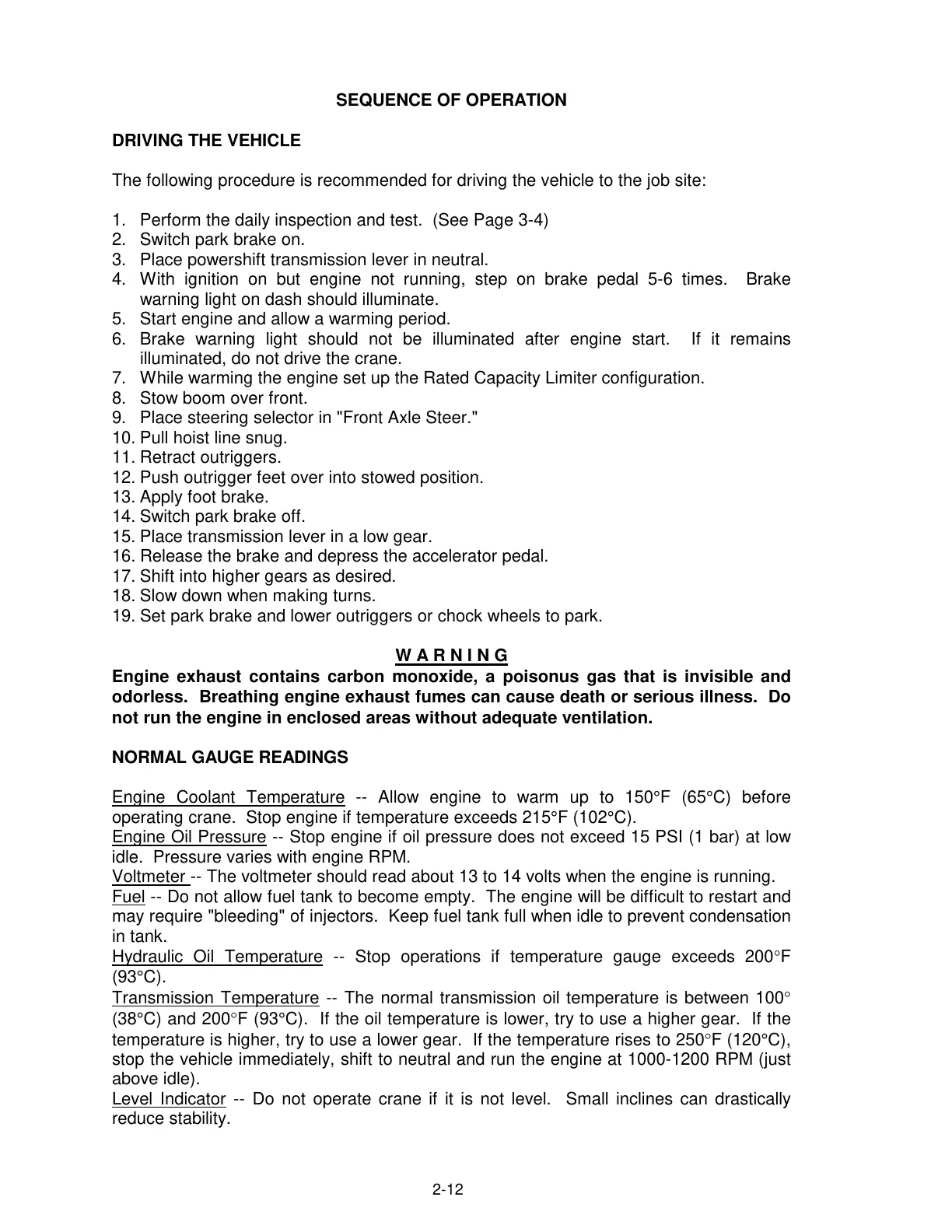 operating crane. Stop engine if temperature exceeds 215°F (102°C).