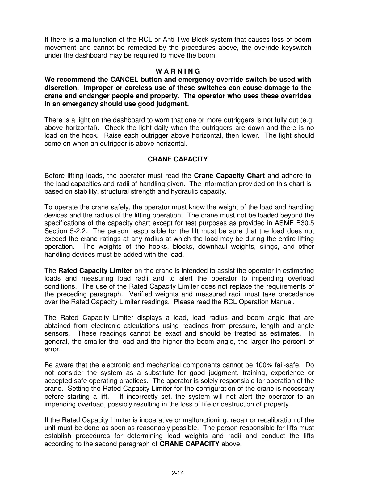over the Rated Capacity Limiter readings. Please read the RCL Operation Manual.